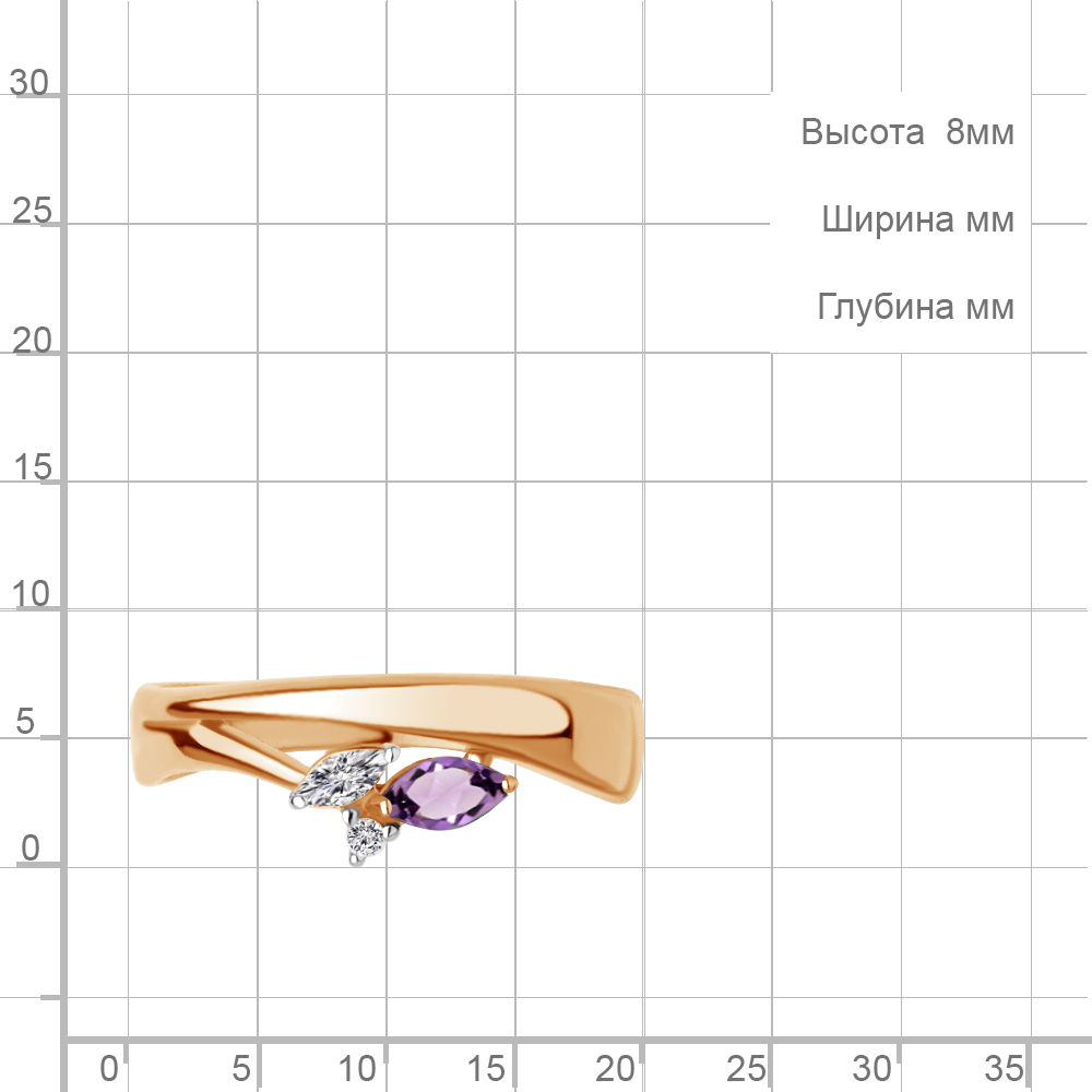 6695904А Кольцо из Серебра с аметистом, фианитами