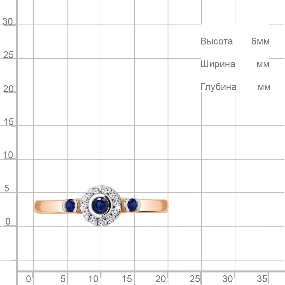 Описание камней 11 Фианит; 2 Наносапфир; 1 Наносапфир