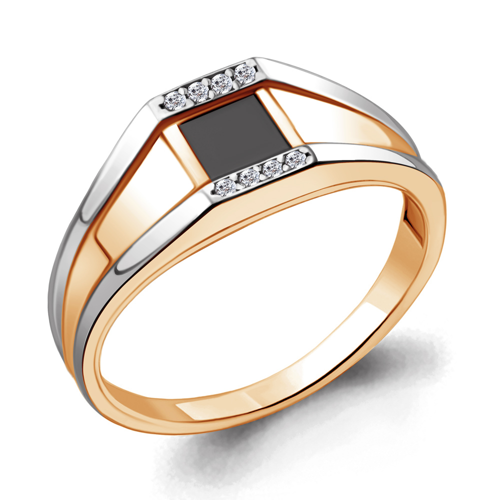 68736АЧ Кольцо из Серебра с фианитами, черным фианитом