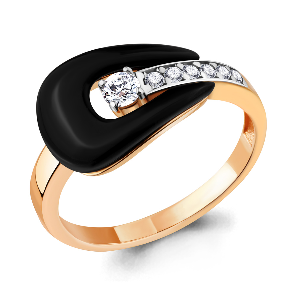 68801А Кольцо из Серебра с керамическим покрытием, фианитами