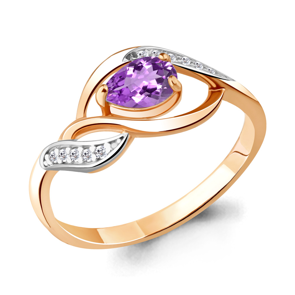 6901104А Кольцо из Серебра с аметистом, фианитами