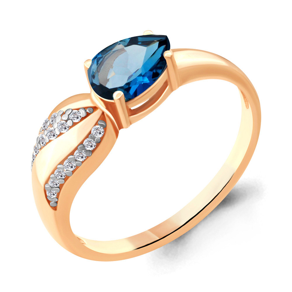 6904108А Кольцо из Серебра с топазом лондон блю, фианитами