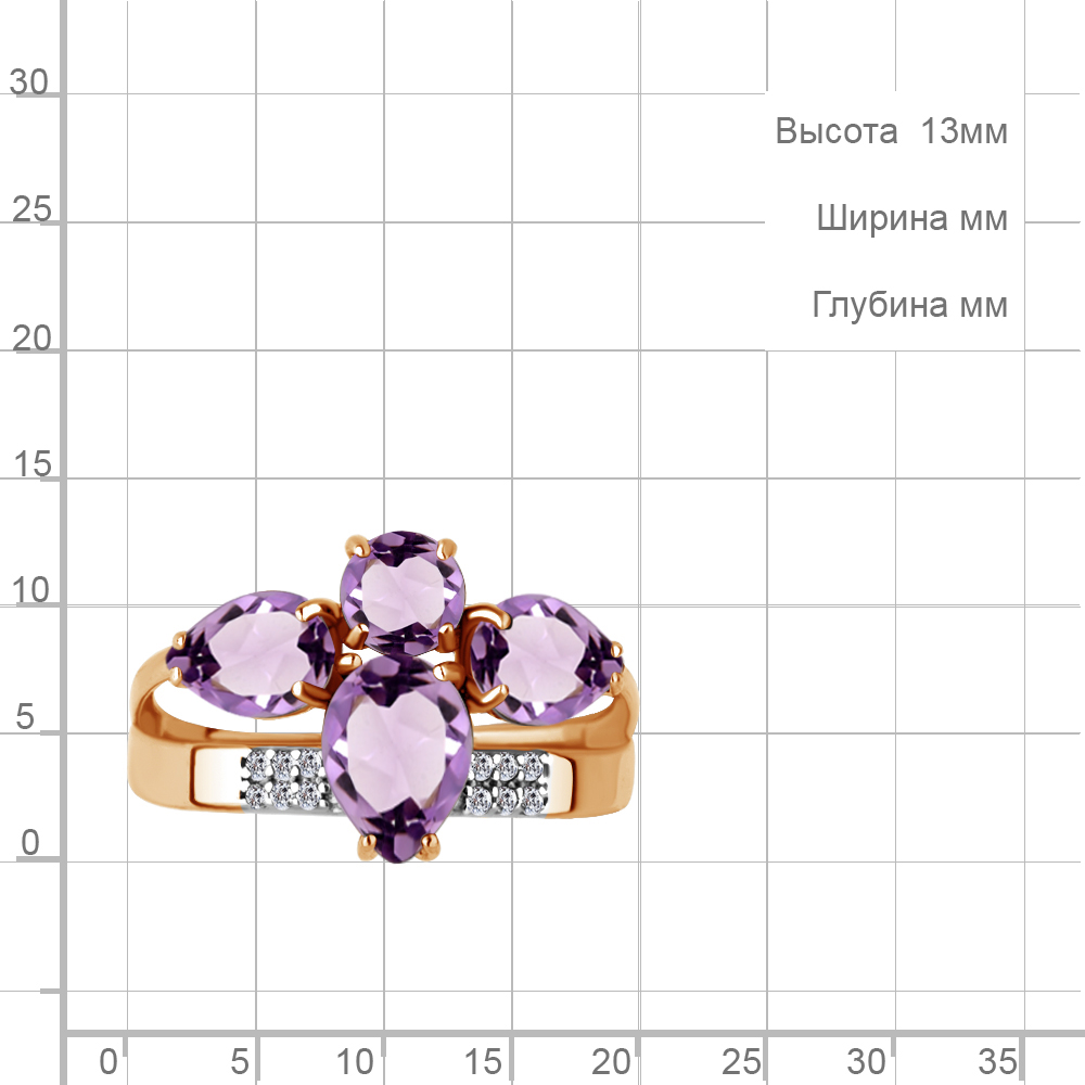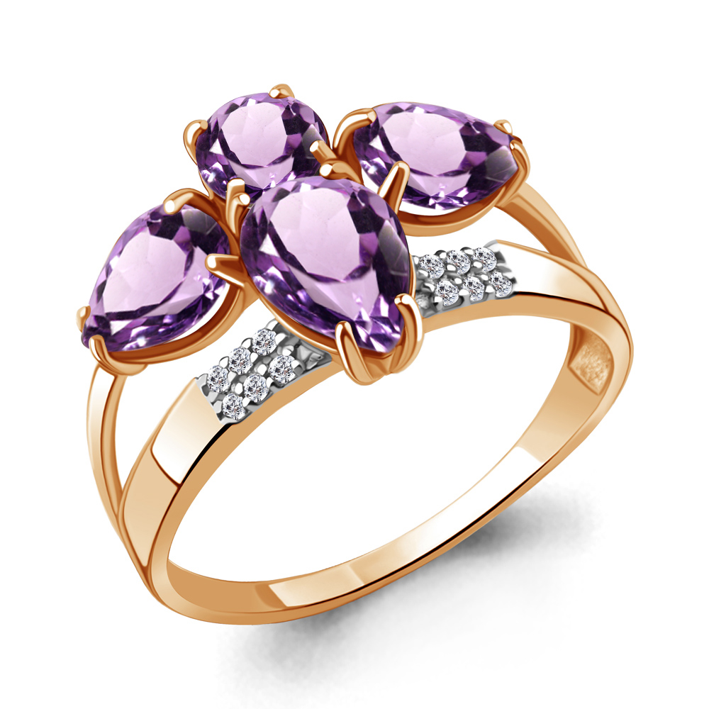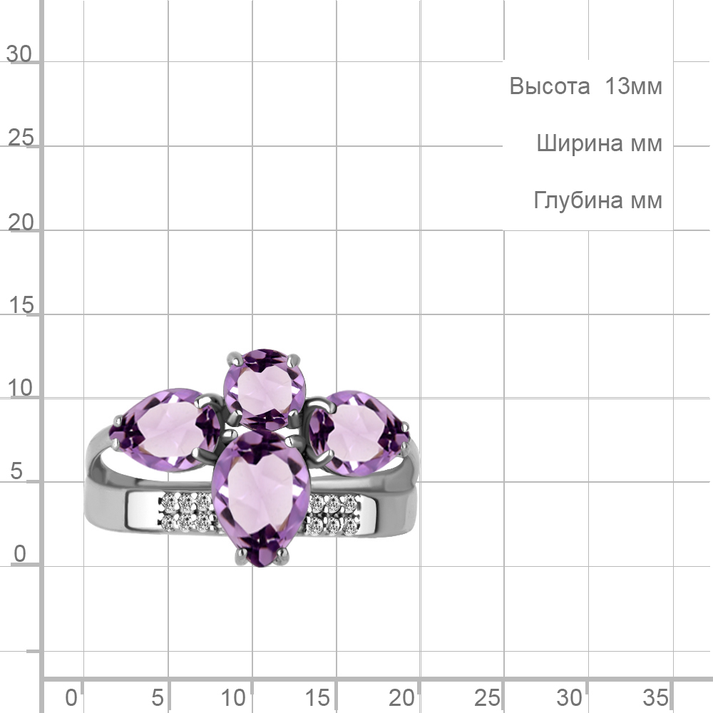 6904204А Кольцо из Серебра с аметистами, фианитами