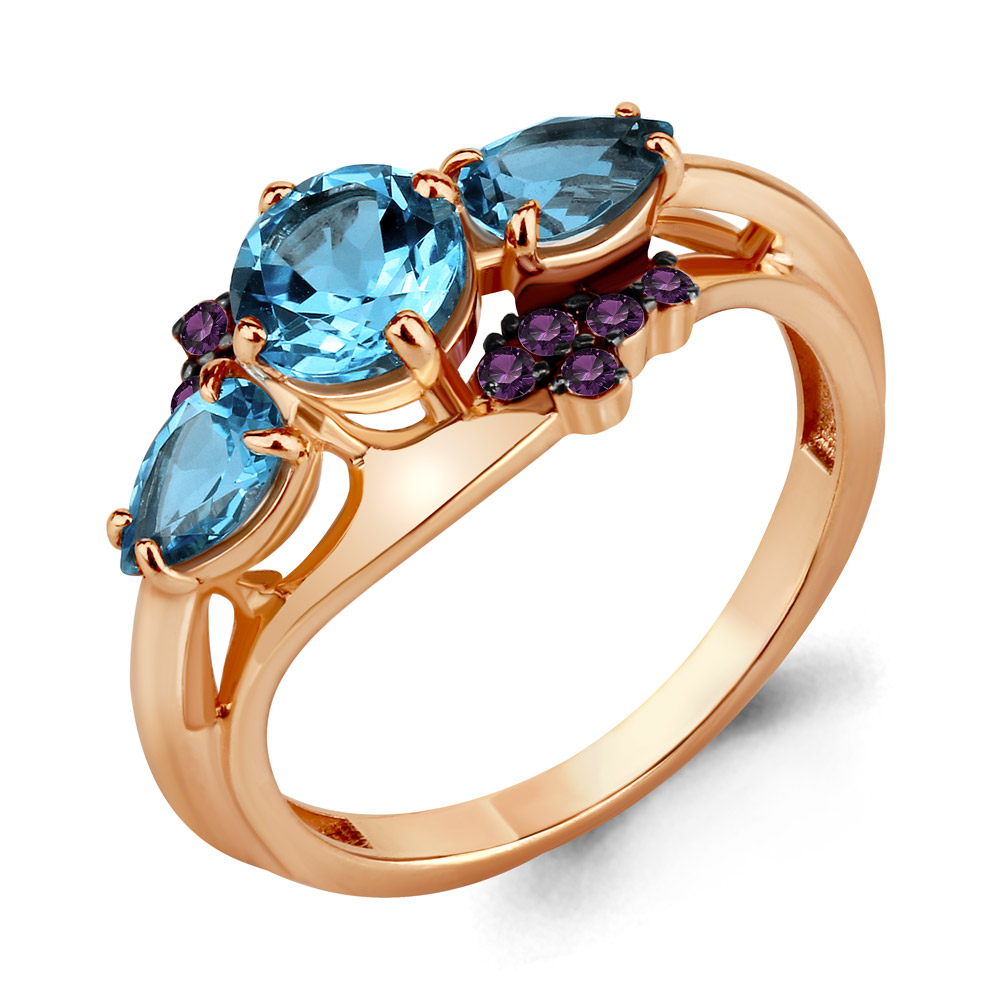 6906405С Кольцо из Серебра с топазами свисс блю, фианитами