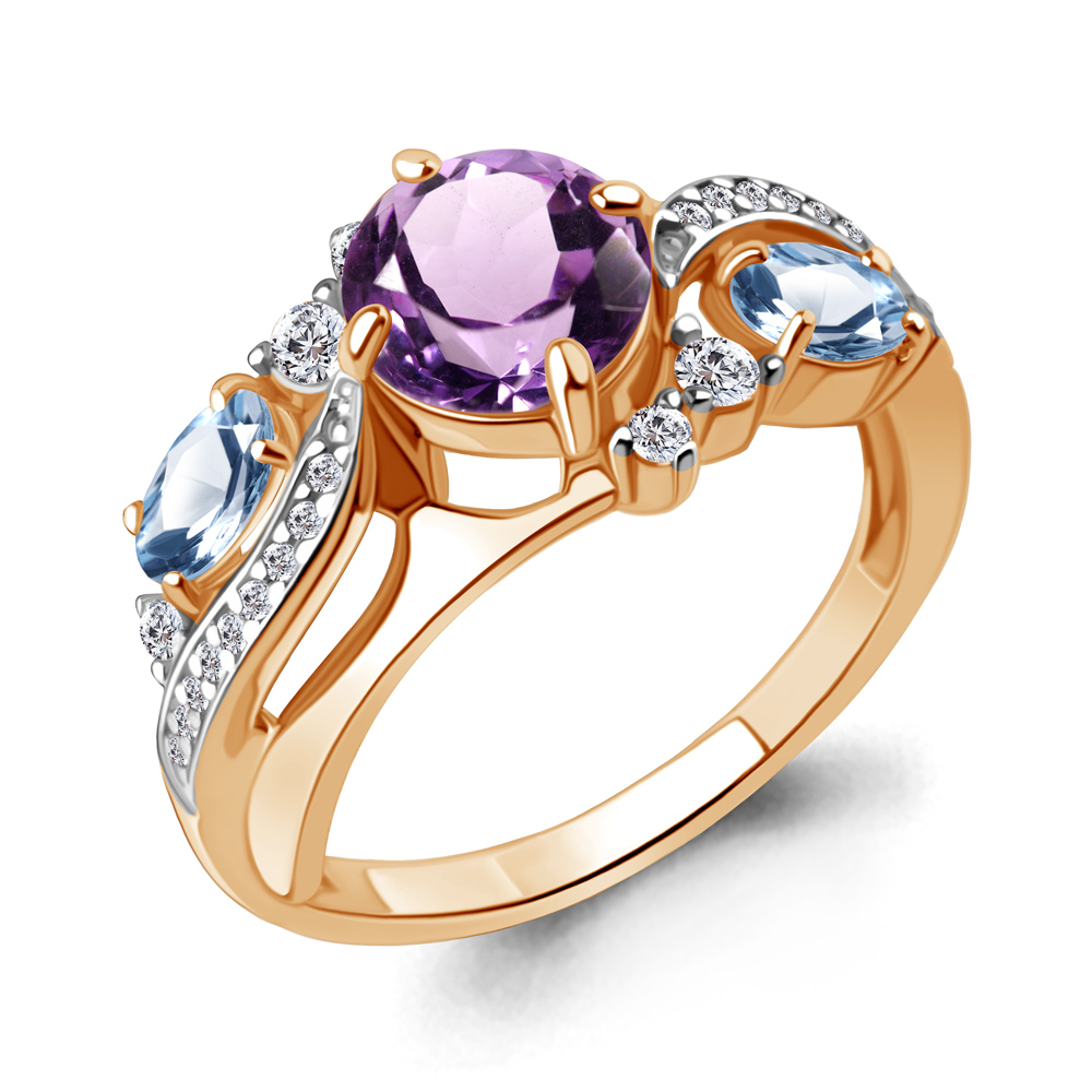 6906930А Кольцо из Серебра с аметистом, топазами свисс блю, фианитами