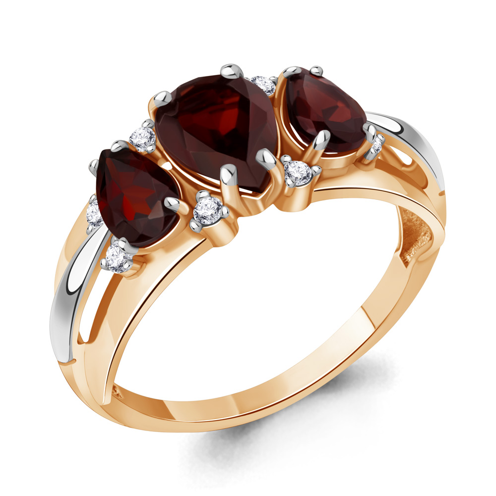 6907103А Кольцо из Серебра с гранатами, фианитами