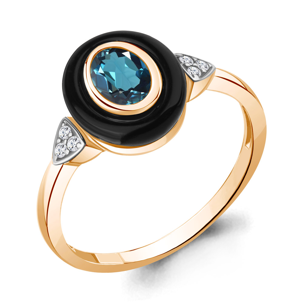 6911108А Кольцо из Серебра с керамическим покрытием, топазом лондон блю, фианитами из коллекции "Neo"