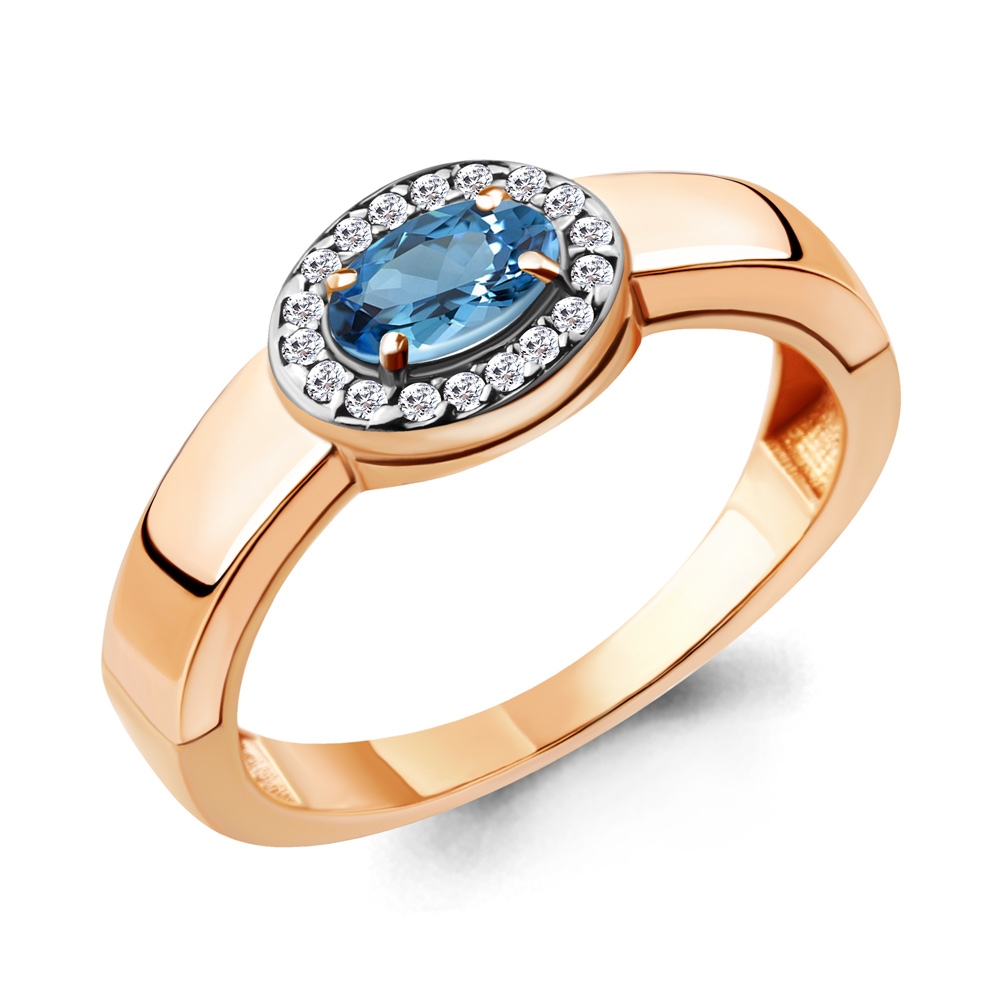 6911705А Кольцо из Серебра с топазом свисс блю, фианитами