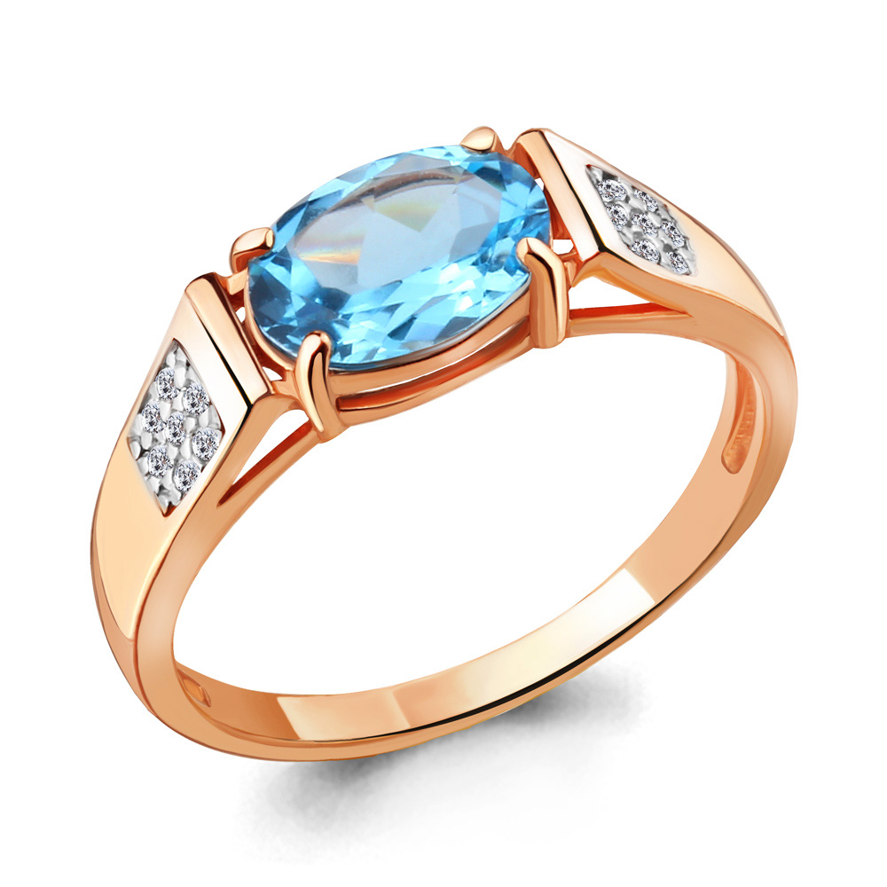 6914605А Кольцо из Серебра с топазом свисс блю, фианитами