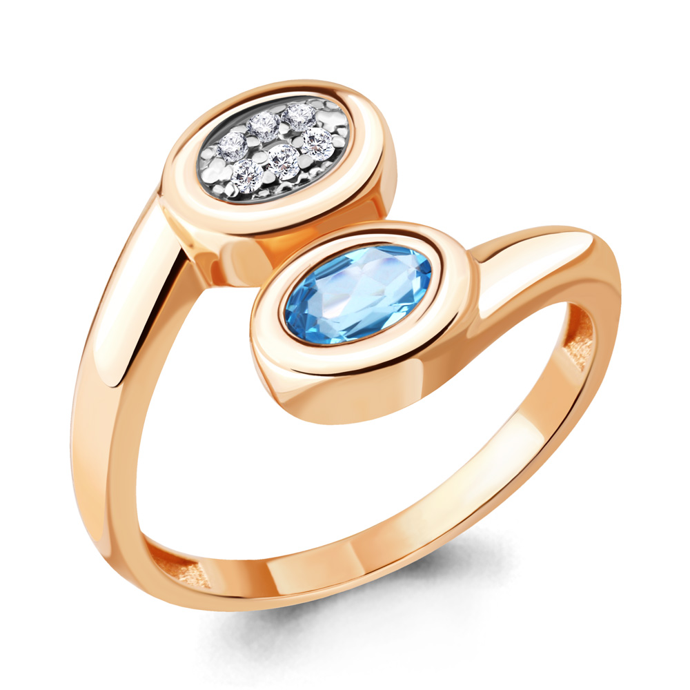 6915805А Кольцо из Серебра с топазом свисс блю, фианитами