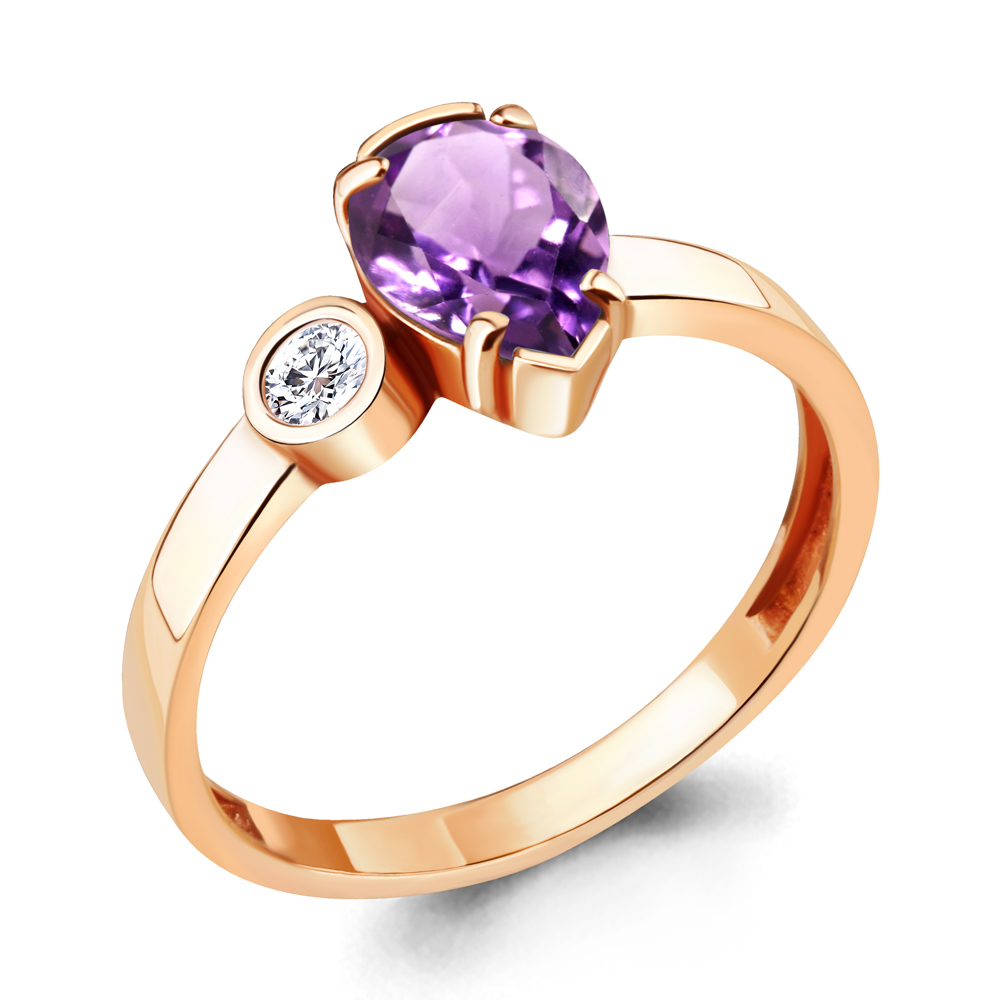 6922004А Кольцо из Серебра с аметистом, фианитом