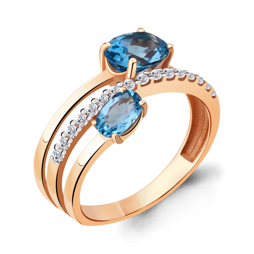 6929005А Кольцо из Серебра с топазами свисс блю, фианитами