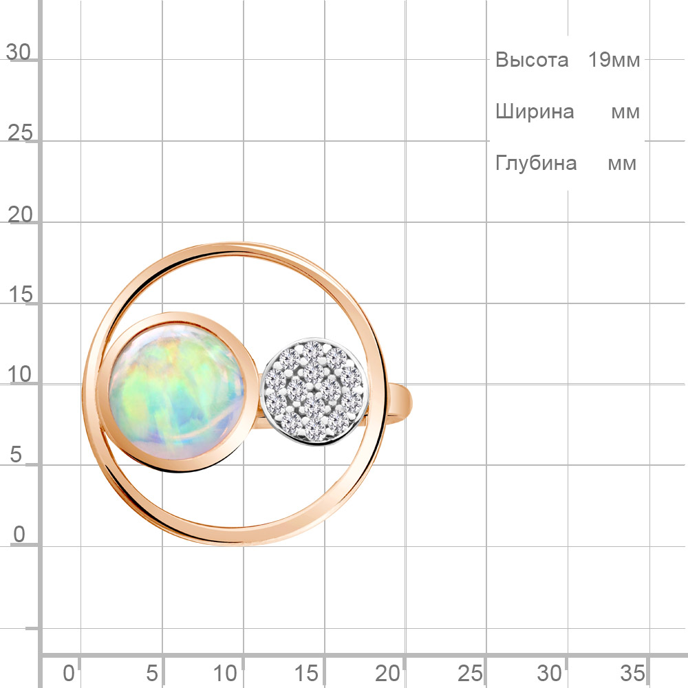 6950098А Кольцо из Серебра с опалом иск., фианитами