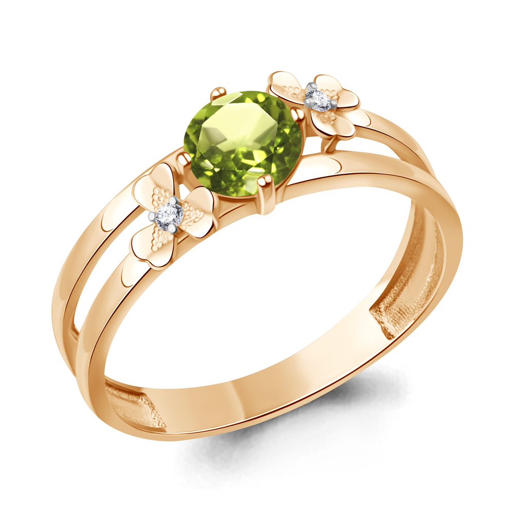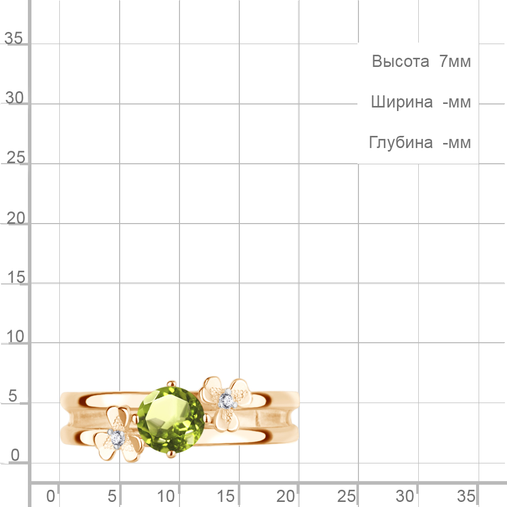 6956207А Кольцо из Серебра с фианитами, хризолитом