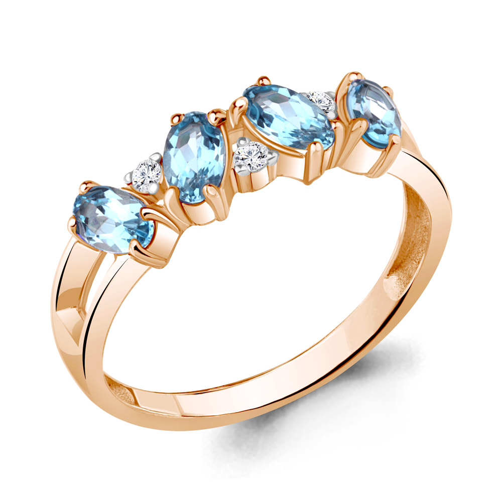 6963405А Кольцо из Серебра с топазами свисс блю, фианитами