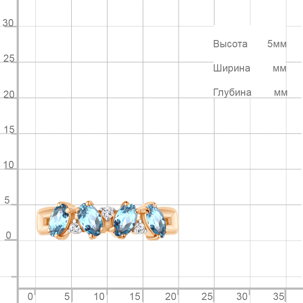 Описание камней 4 Топаз Свисс Блю; 3 Фианит