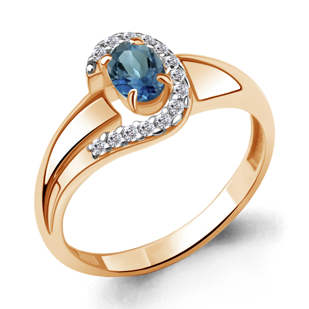 6967408А Кольцо из Серебра с топазом лондон блю, фианитами