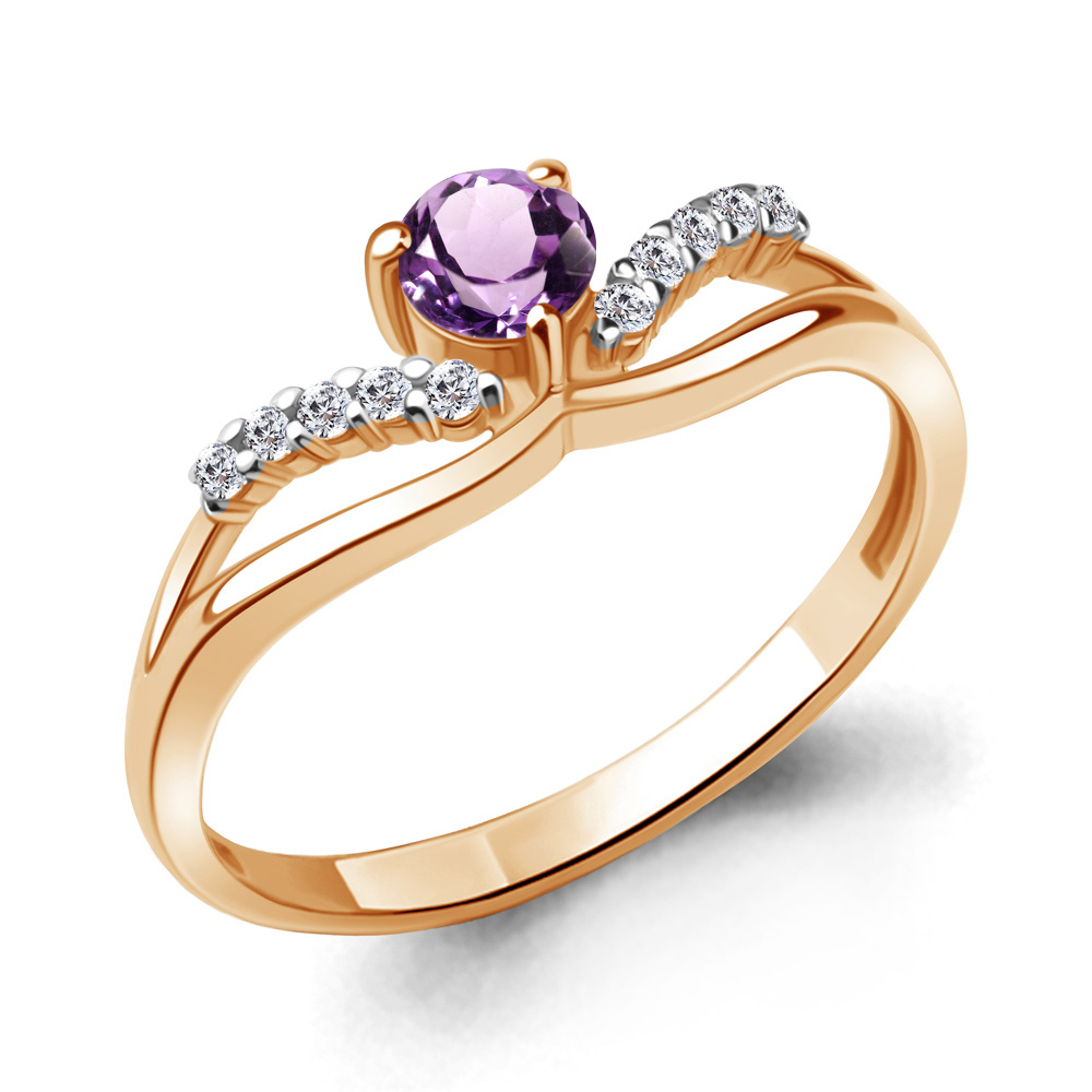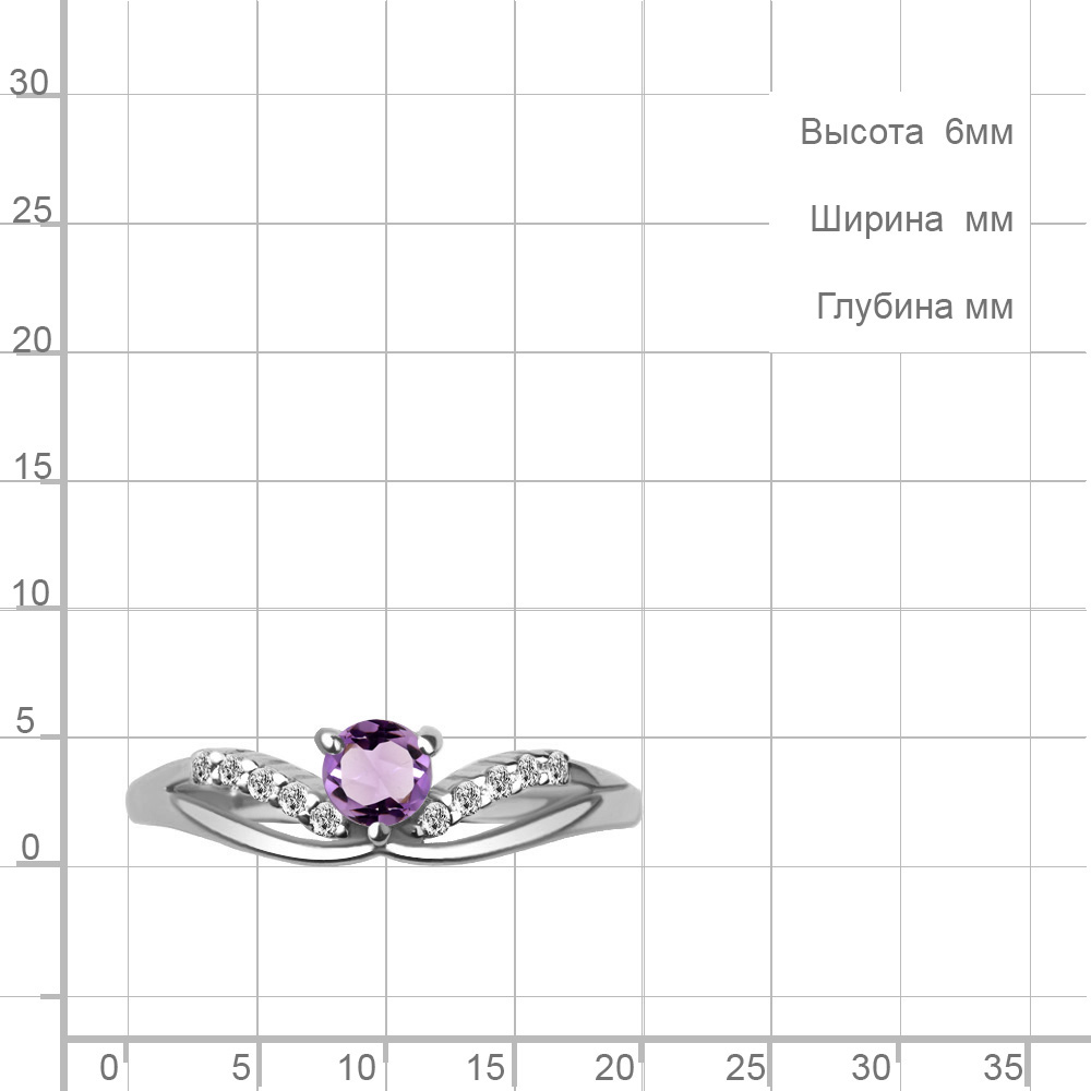 6968504А Кольцо из Серебра с аметистом, фианитами