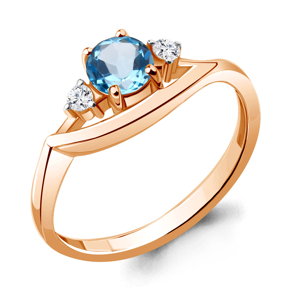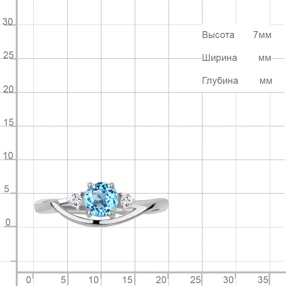 6971605А Кольцо из Серебра с топазом свисс блю, фианитами