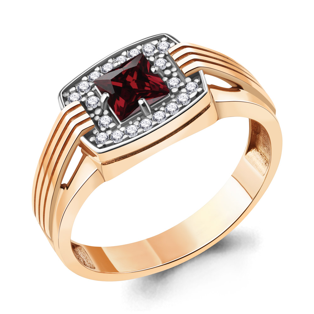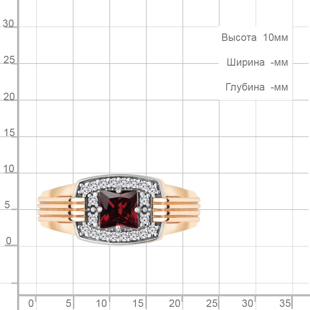 6973203А Кольцо из Серебра с гранатом, фианитами