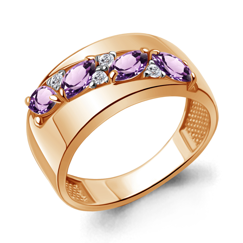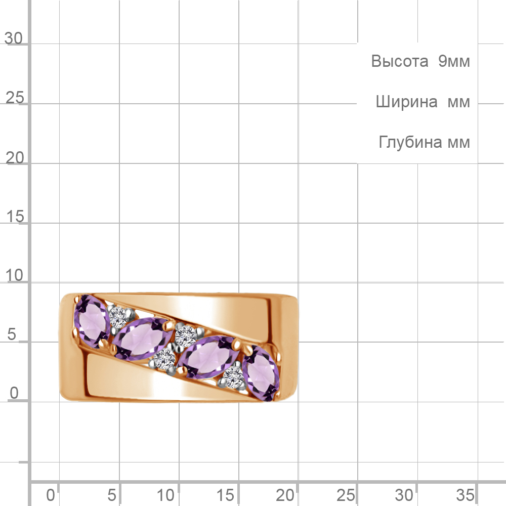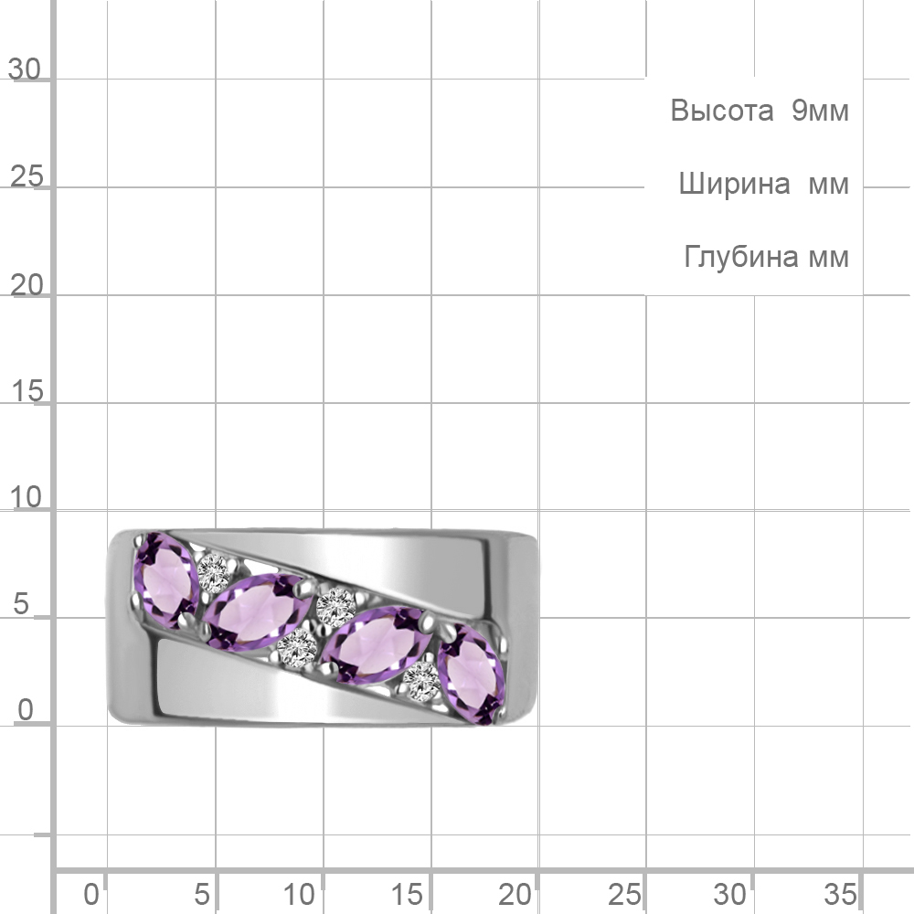 6974804А Кольцо из Серебра с аметистами, фианитами