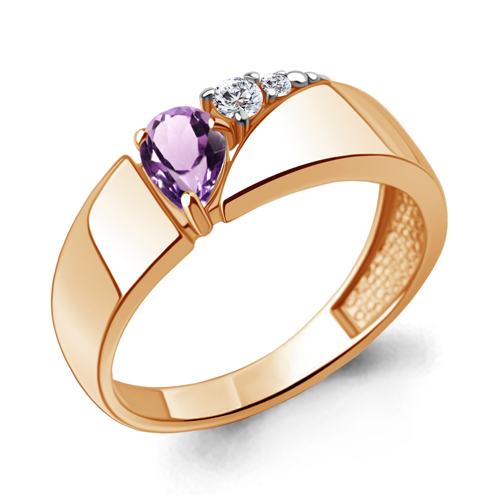 6975004А Кольцо из Серебра с аметистом, фианитами