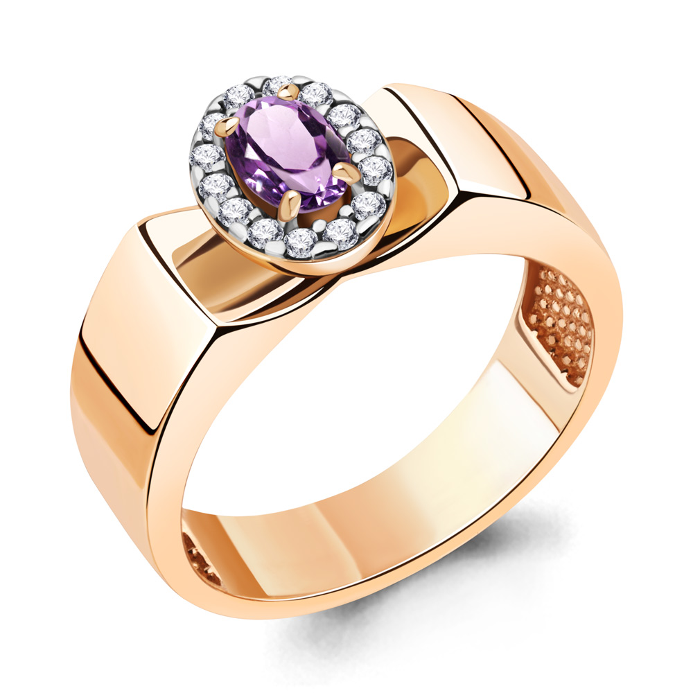 6976404А Кольцо из Серебра с аметистом, фианитами