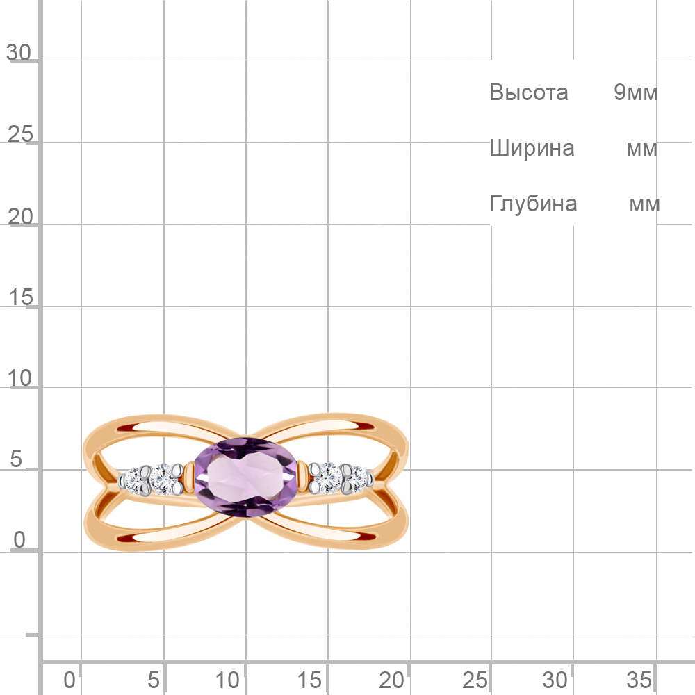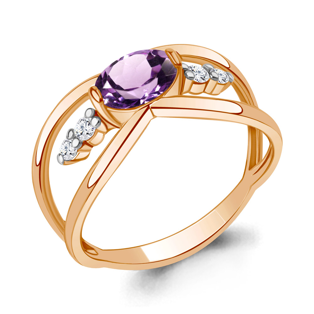 6979704А Кольцо из Серебра с аметистом, фианитами