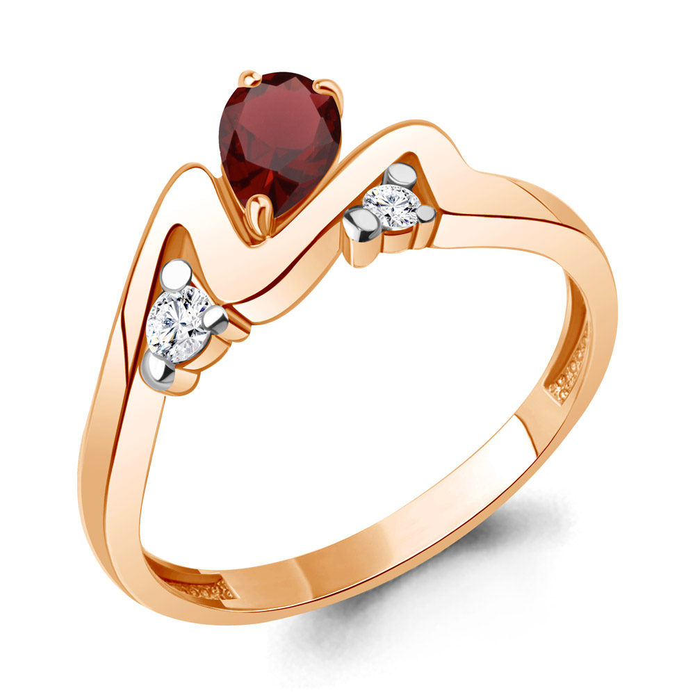 6981203А Кольцо из Серебра с гранатом, фианитами