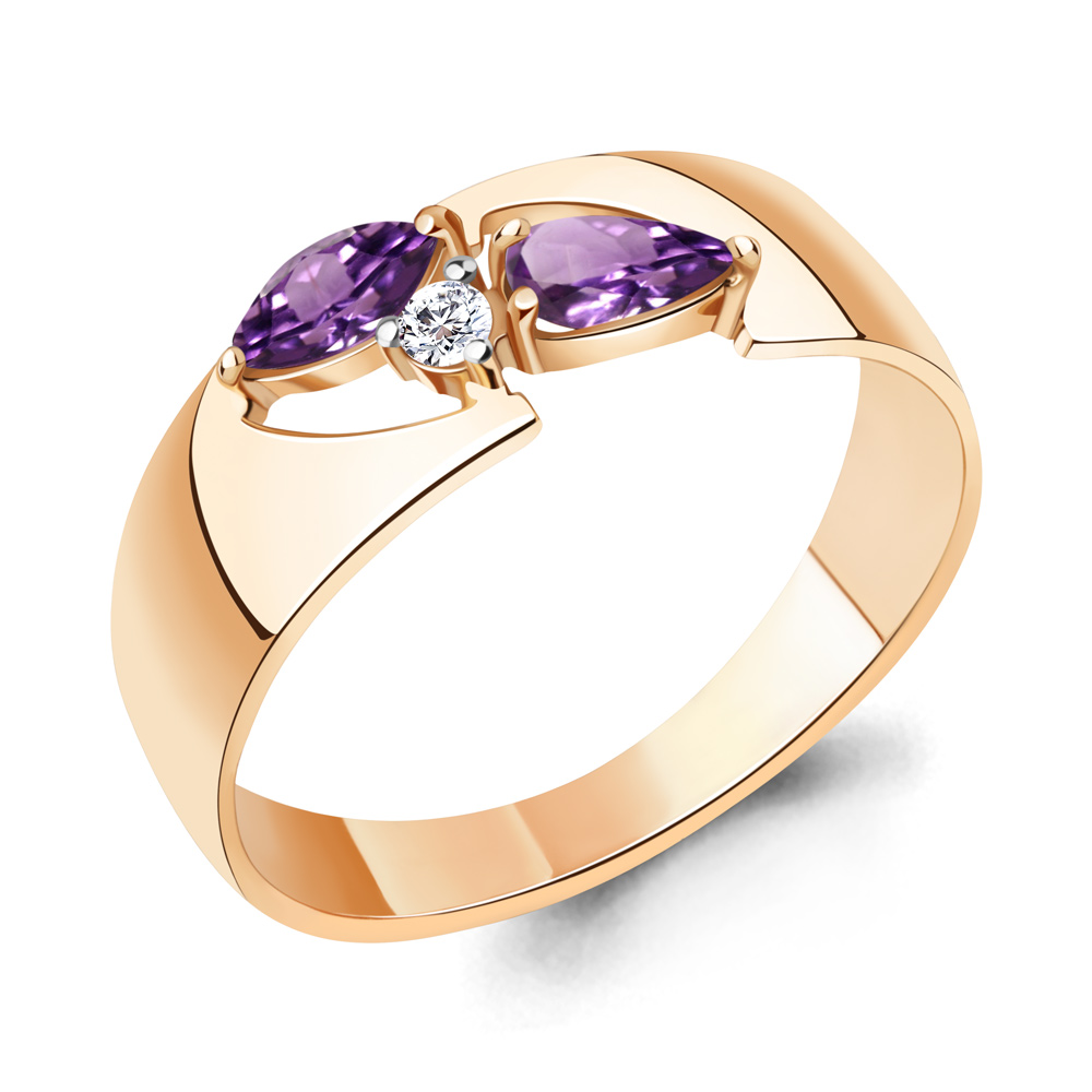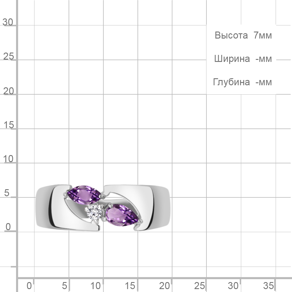 6983004А Кольцо из Серебра с аметистами, фианитом