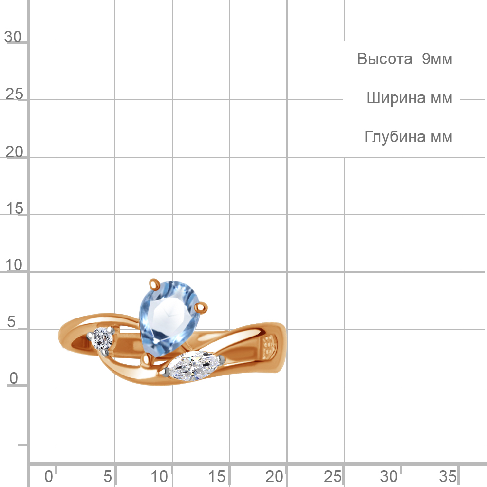 Описание камней 1 Топаз Свисс Блю; 1 Фианит; 1 Фианит
