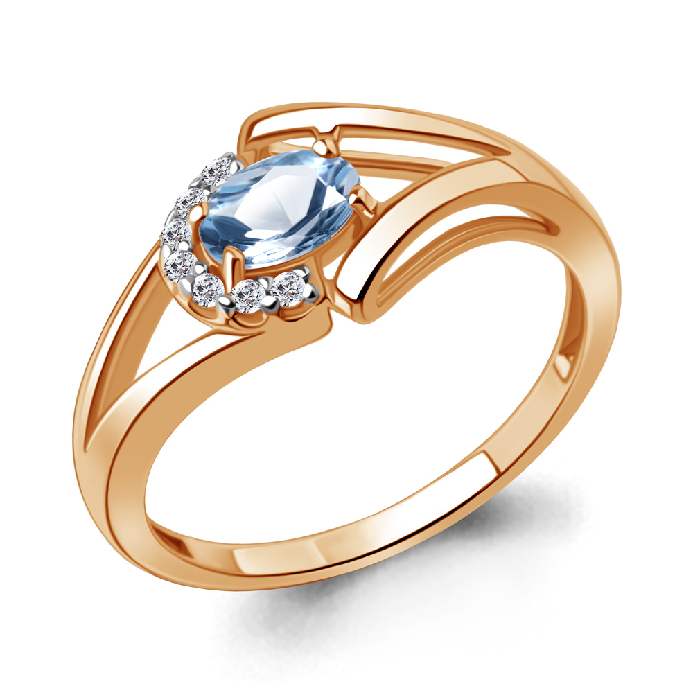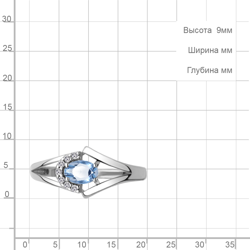 6991605А Кольцо из Серебра с топазом свисс блю, фианитами