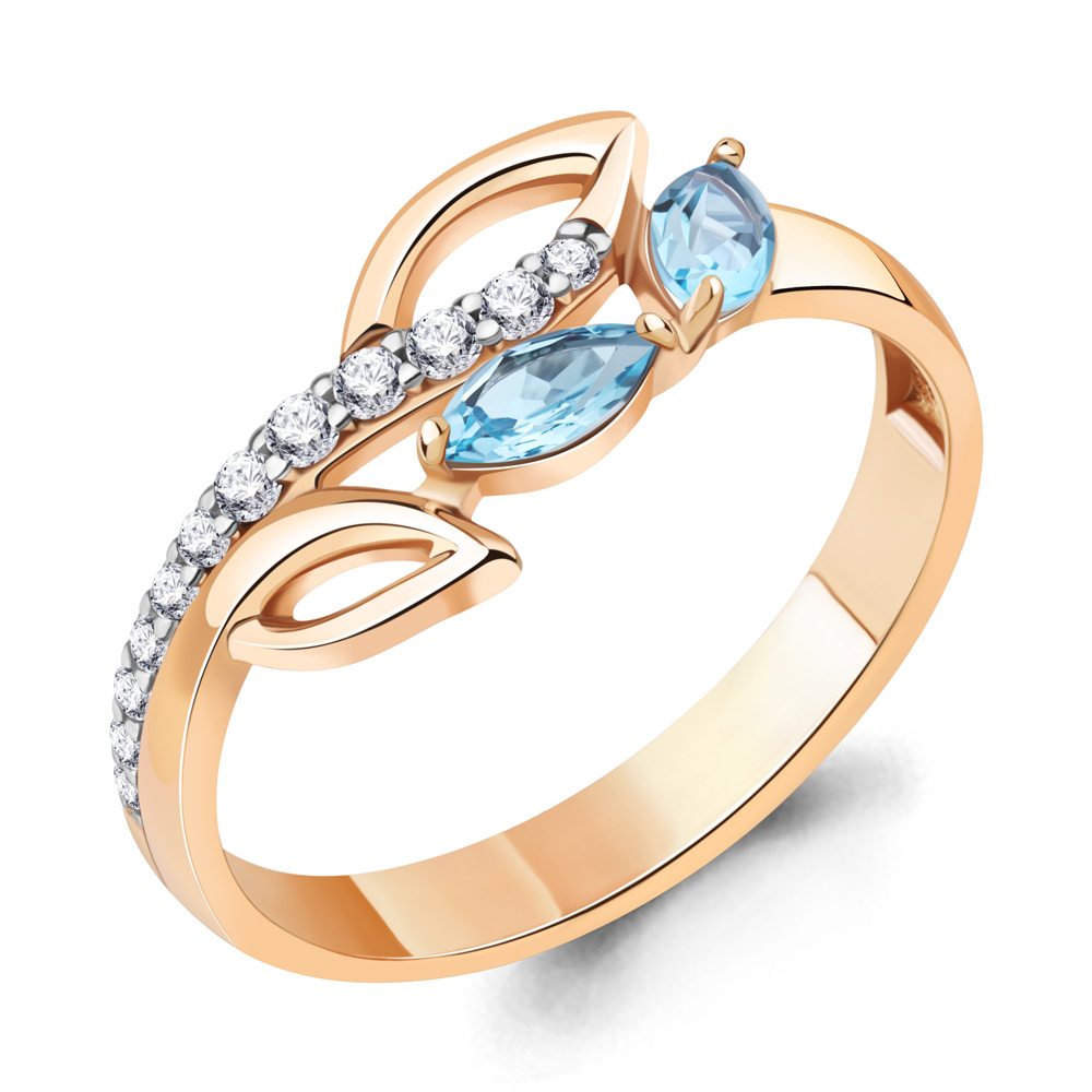 6991905А Кольцо из Серебра с топазами свисс блю, фианитами