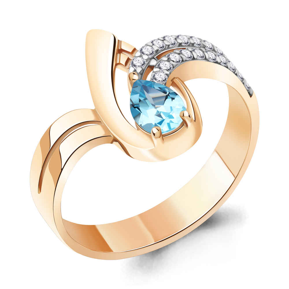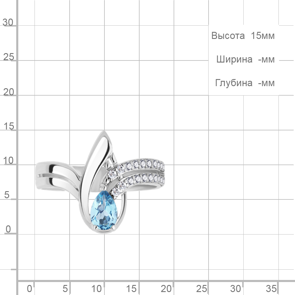 6992105А Кольцо из Серебра с топазом свисс блю, фианитами