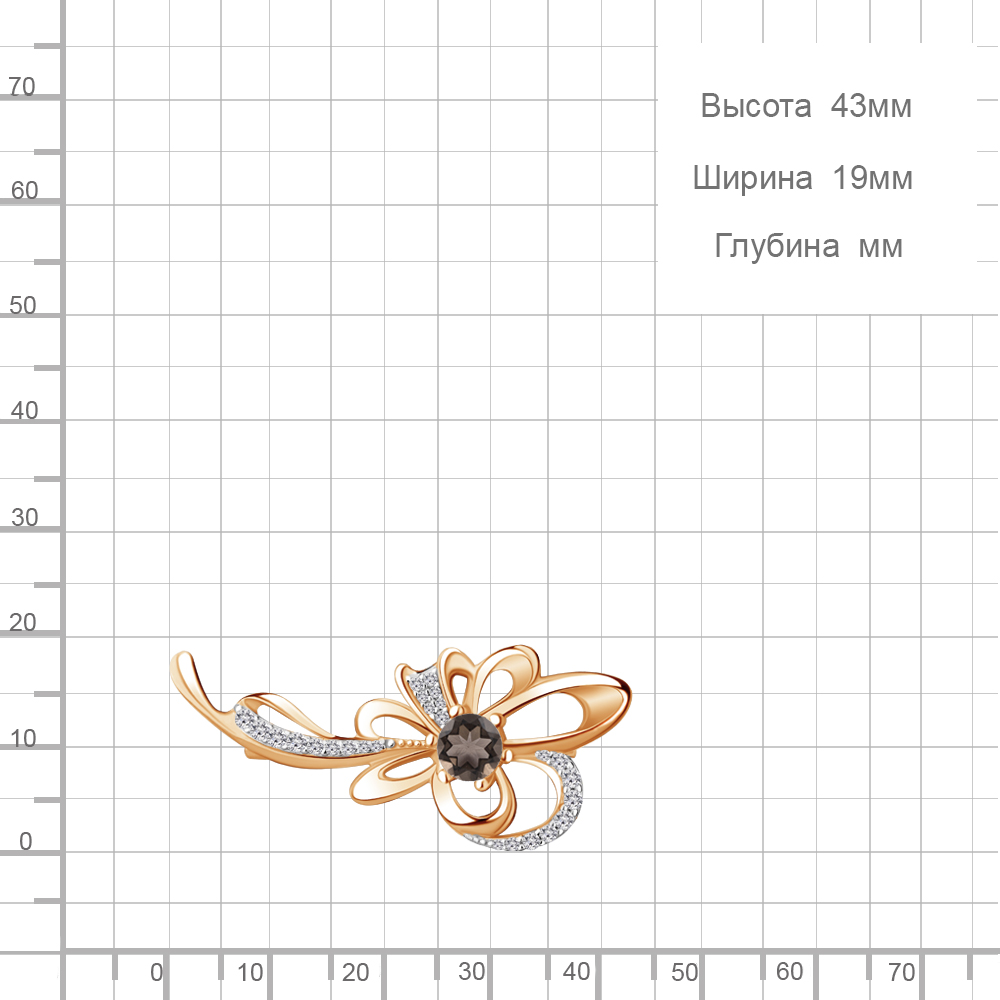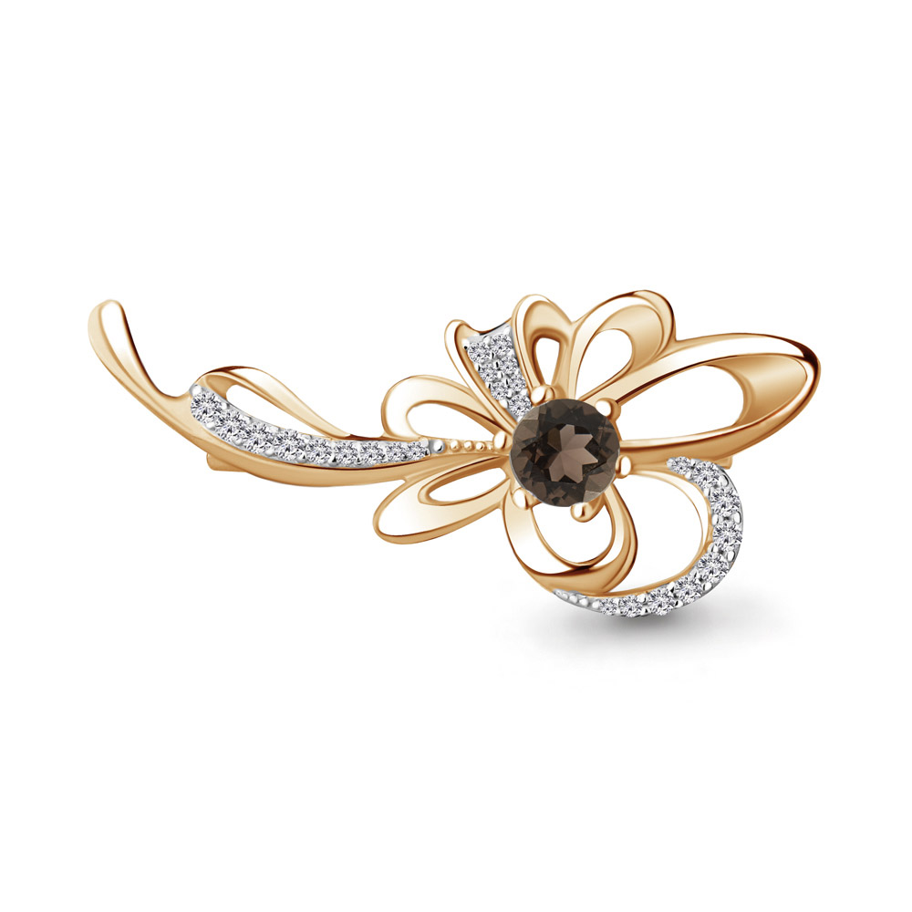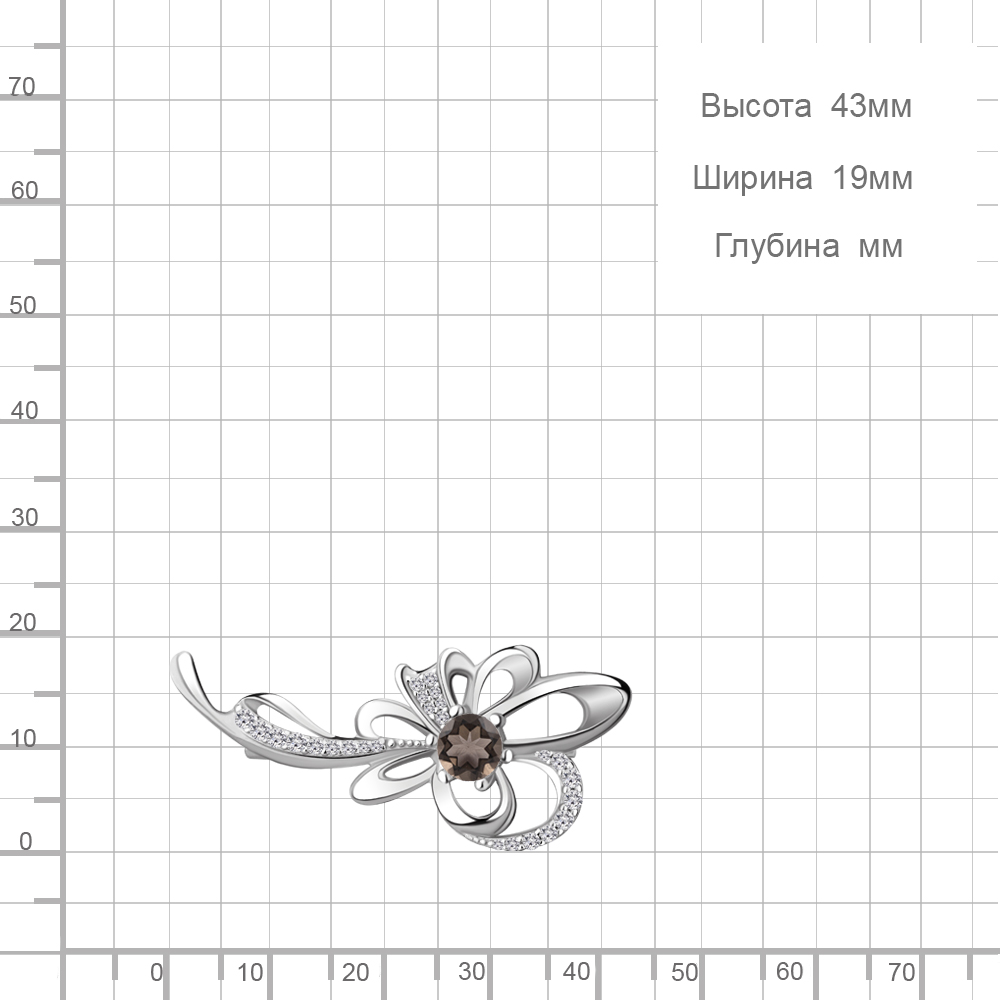7150901А Брошь из Серебра с кварцем дымчатым, фианитами