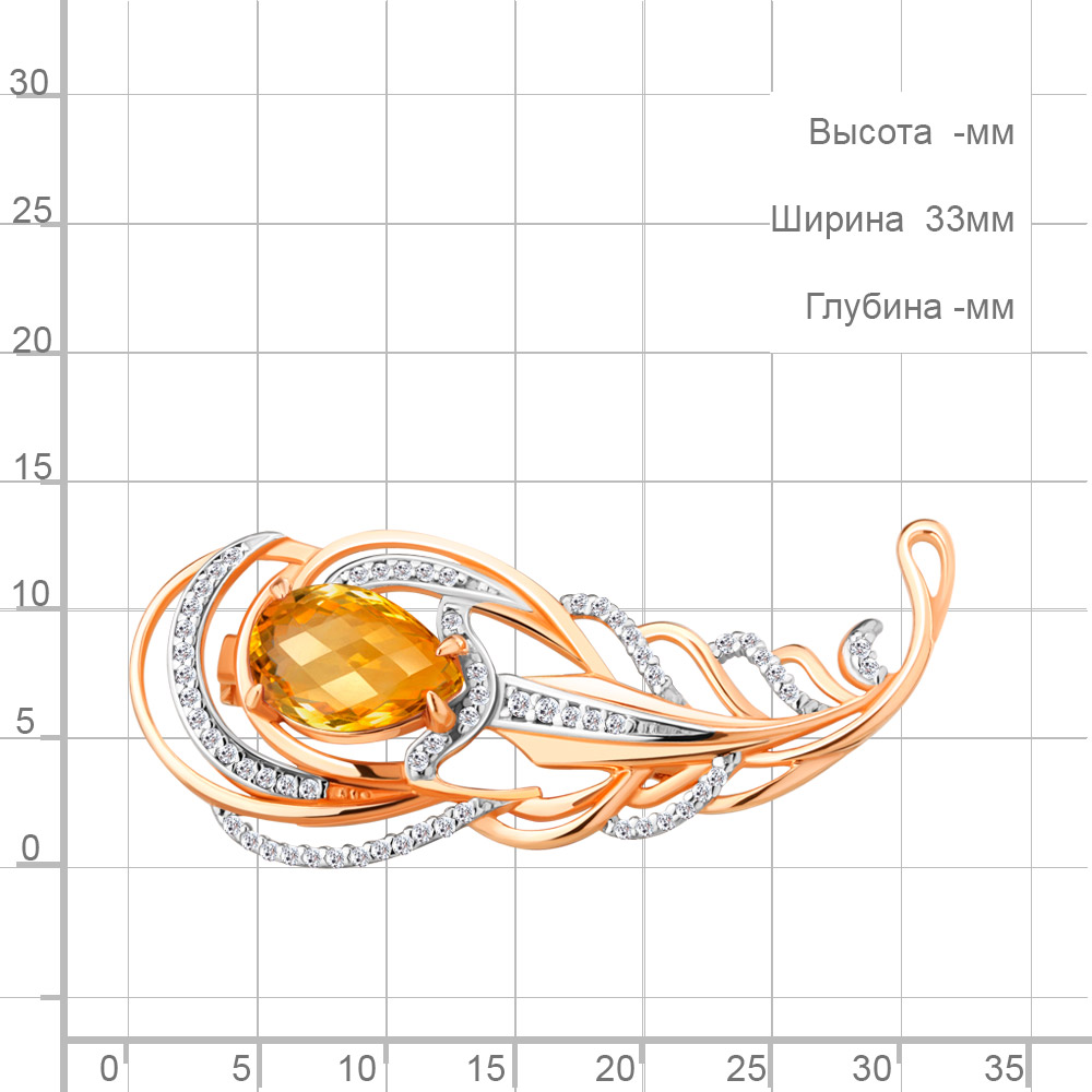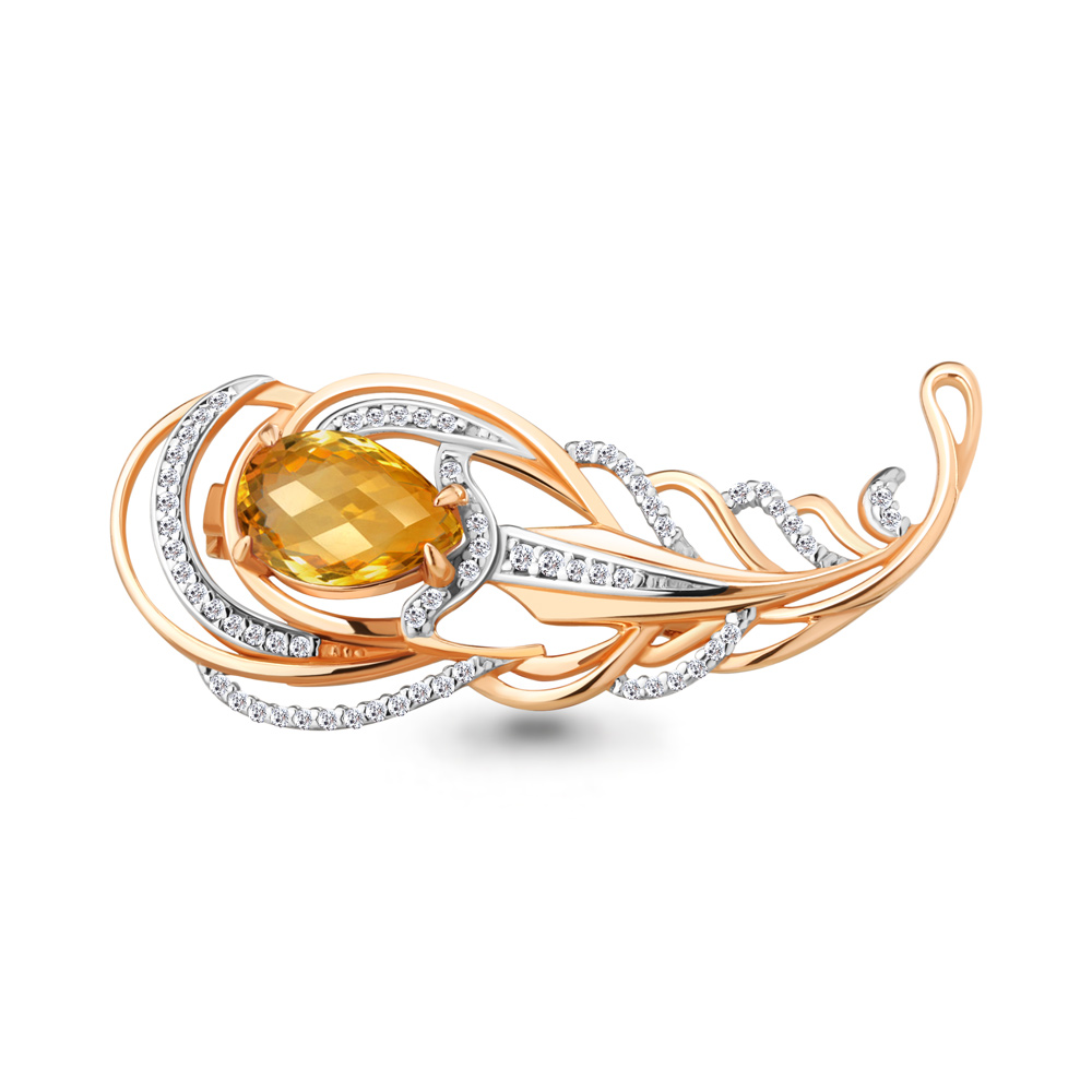 7261306А Брошь из Серебра с фианитами, цитрином