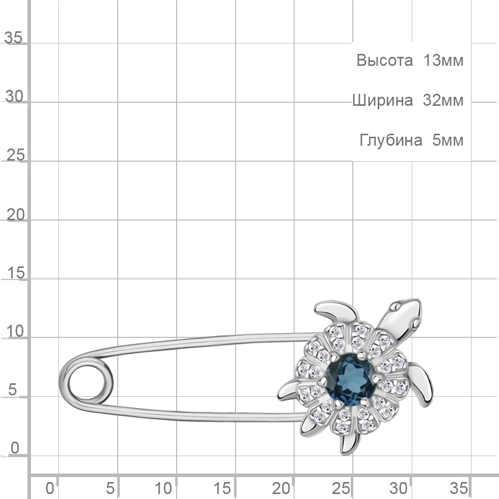 7272008А Булавка из Серебра с топазом лондон блю, фианитами