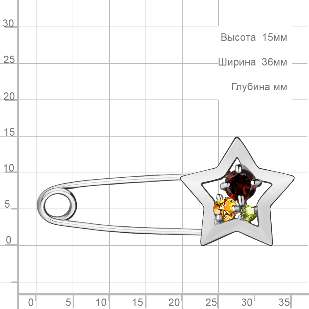 7272547 Булавка из Серебра с гранатом, кварцем дымчатым, цитрином
