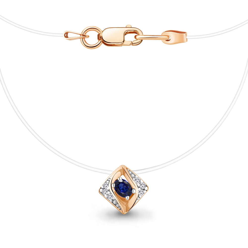 73667АБ Колье из Серебра с леской, наносапфиром, фианитами из коллекции "Клеопатра"
