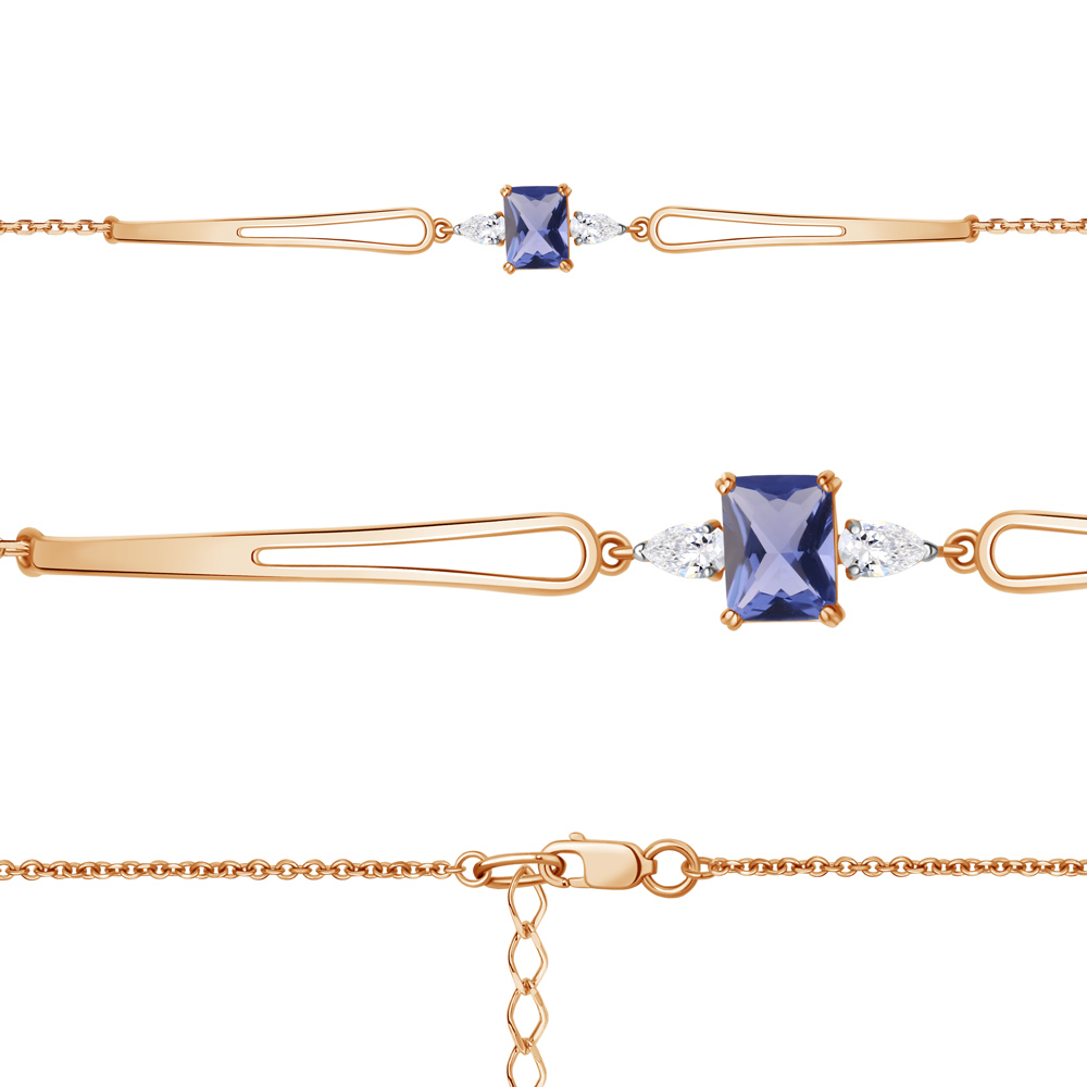 74768603 Браслет из Серебра с нанотанзанитом иск., фианитами