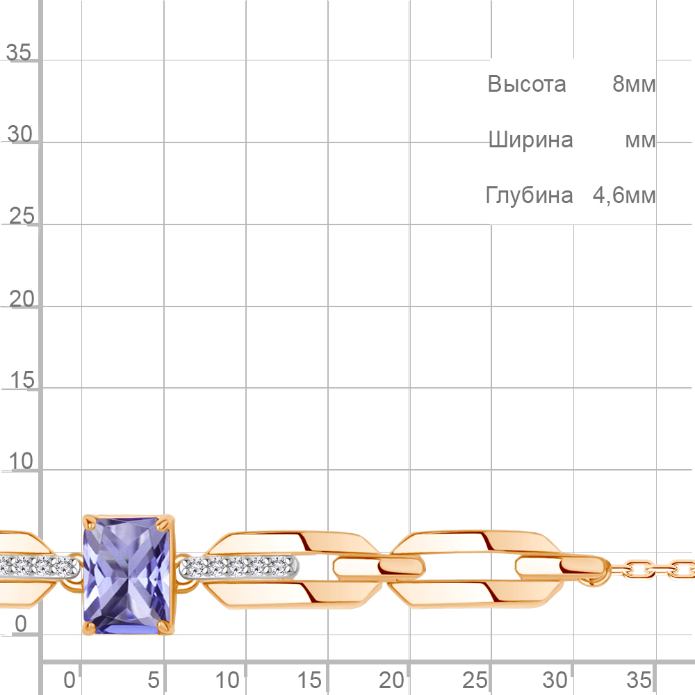 74772603А Браслет из Серебра с нанотанзанитом иск., фианитами