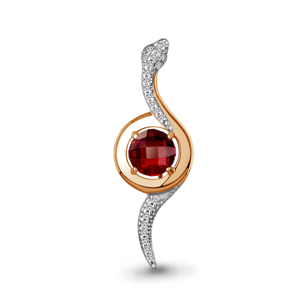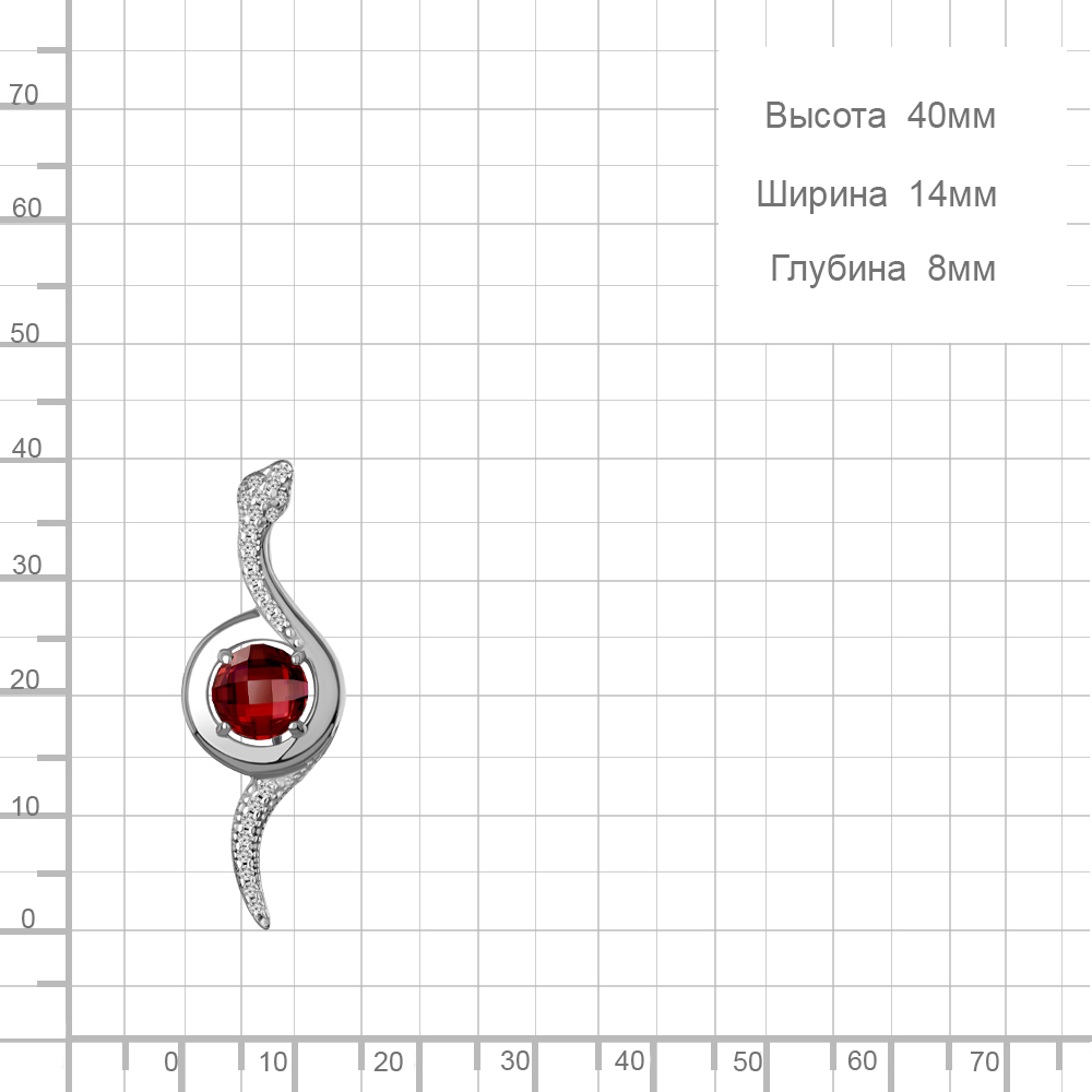 7747285А Брошь из Серебра с наногранатом, фианитами