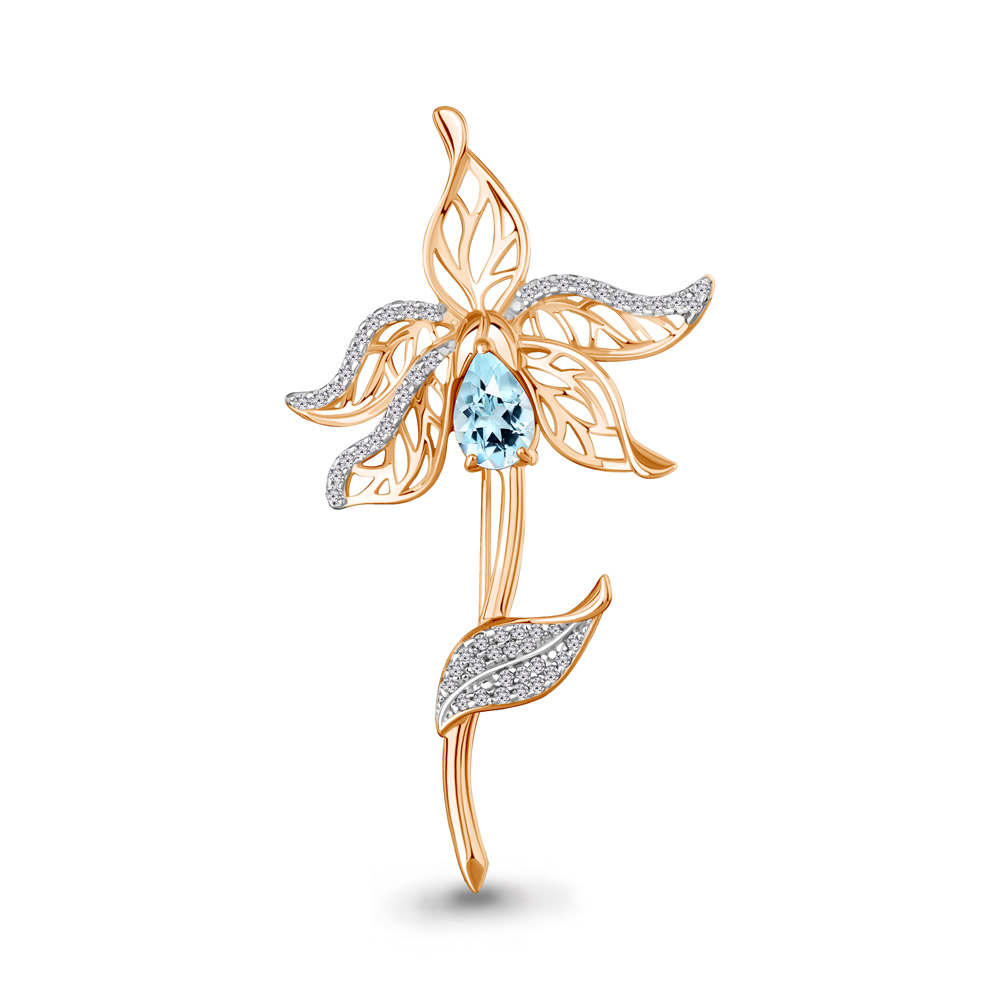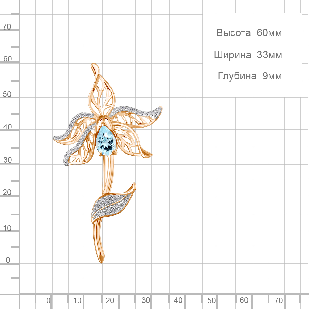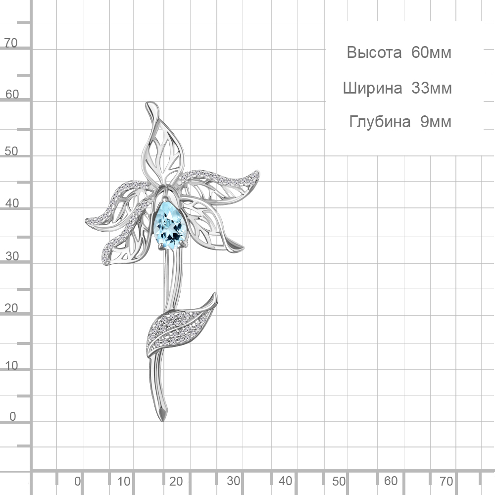 7747602А Брошь из Серебра с топазом скай блю, фианитами