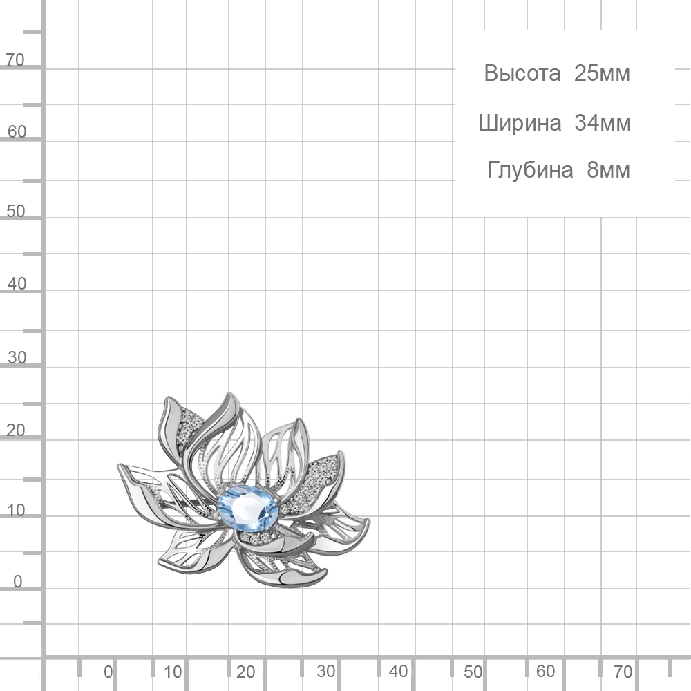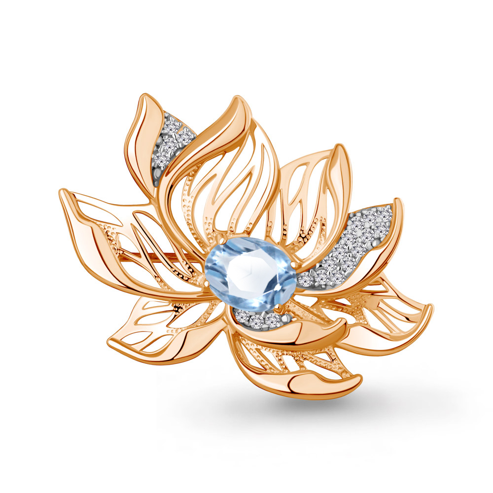 7747705А Брошь из Серебра с топазом свисс блю, фианитами