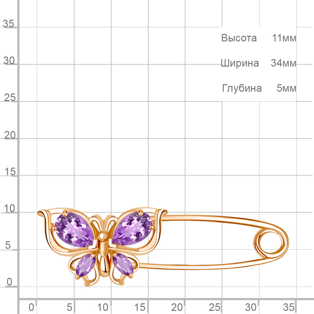7748704 Булавка из Серебра с аметистами