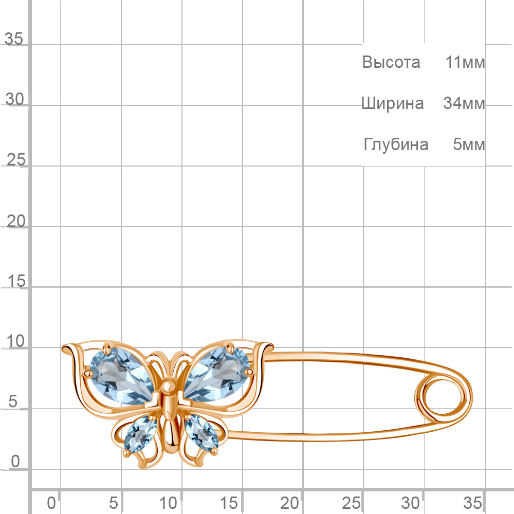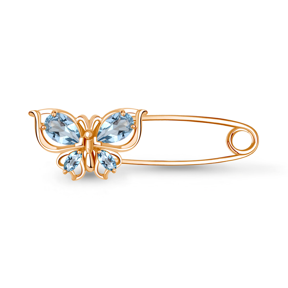 7748705 Булавка из Серебра с топазами свисс блю
