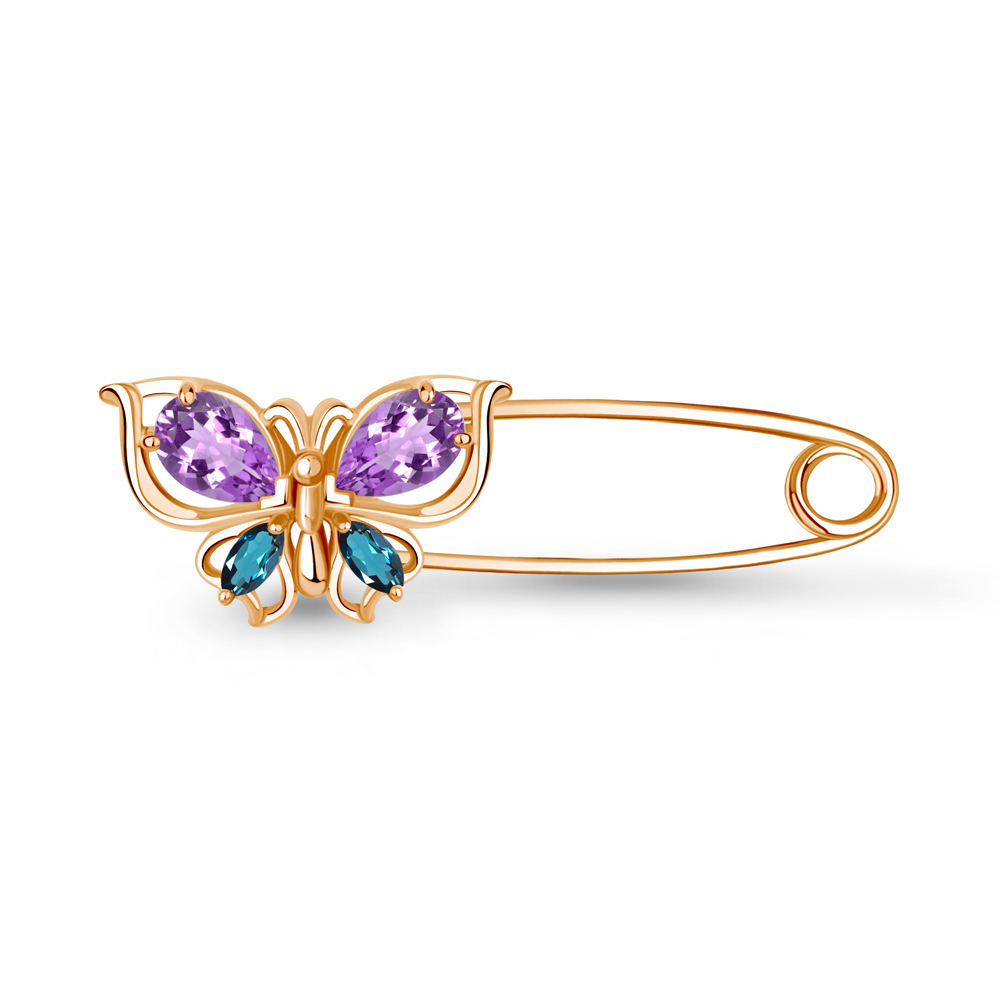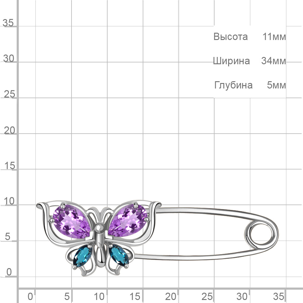 7748732 Булавка из Серебра с аметистами, топазами лондон блю