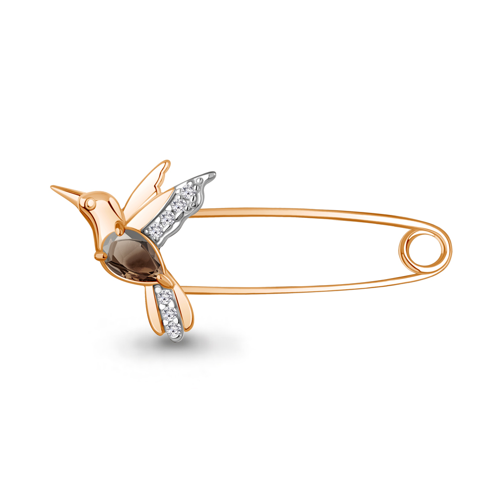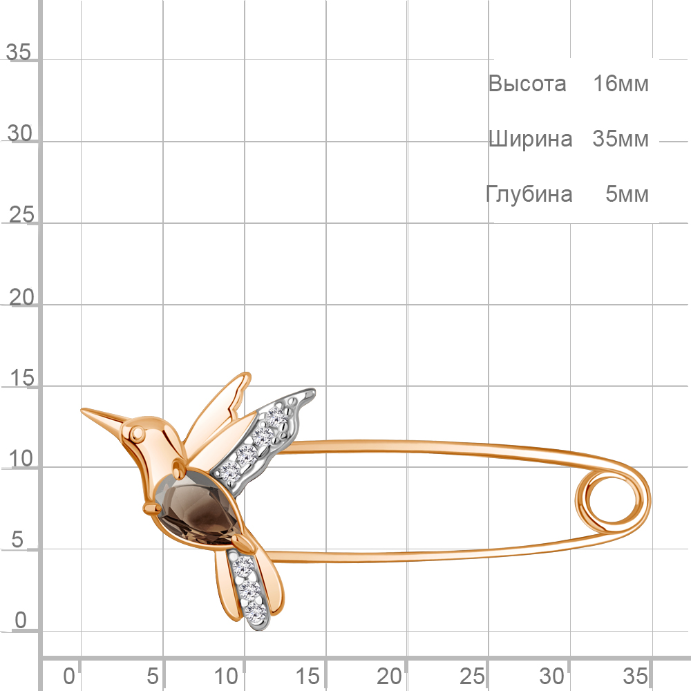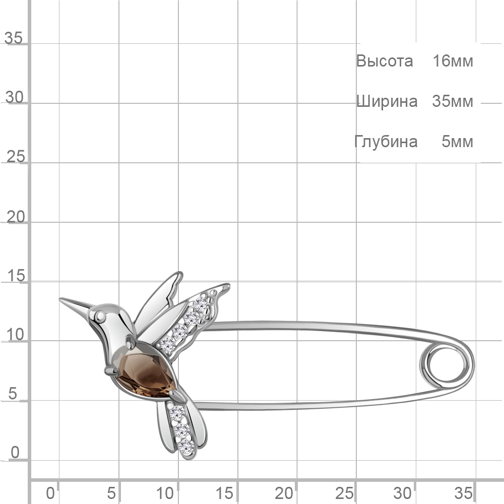 7748801А Булавка из Серебра с кварцем дымчатым, фианитами