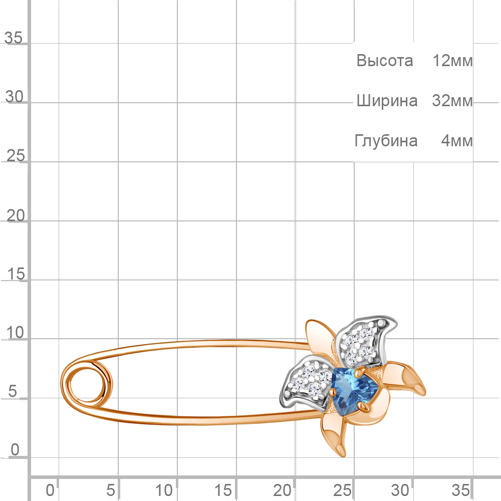 7748905А Булавка из Серебра с топазом свисс блю, фианитами