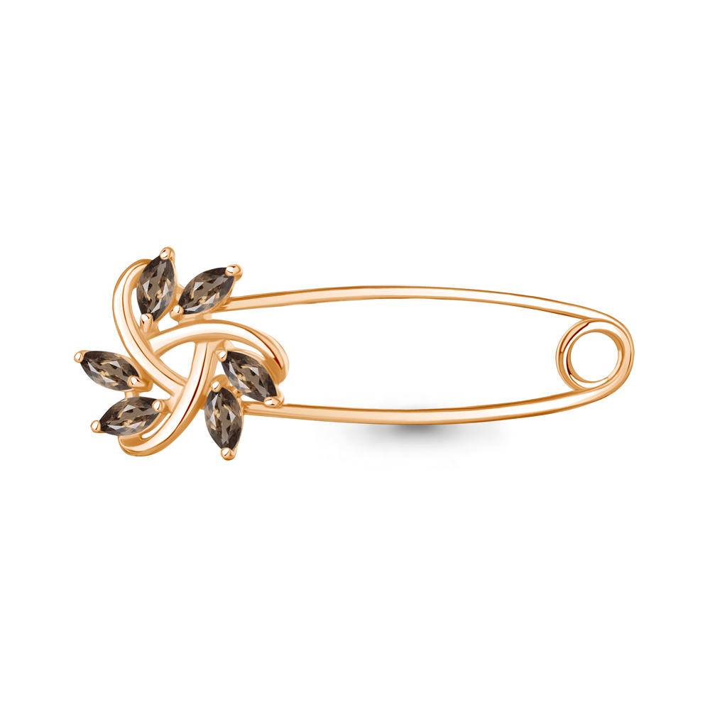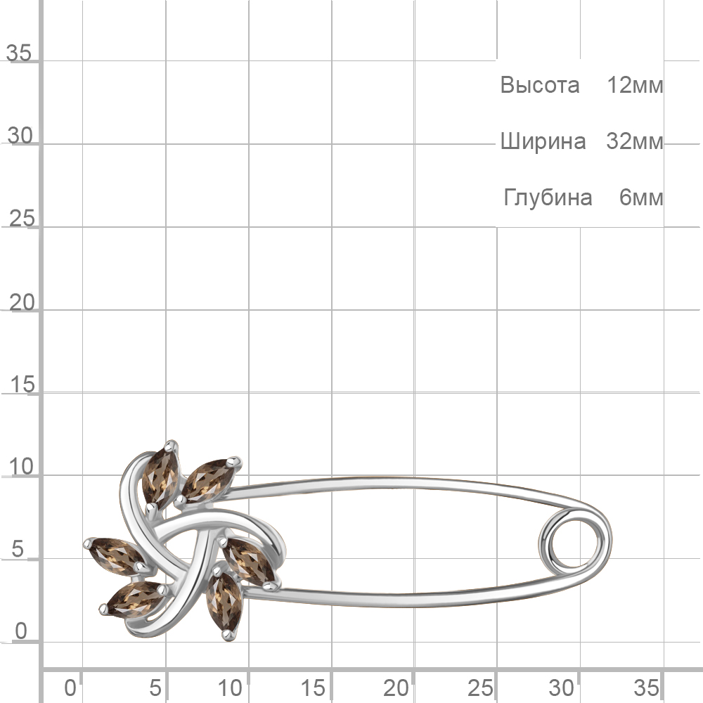 7749001 Булавка из Серебра с кварцами дымчатыми